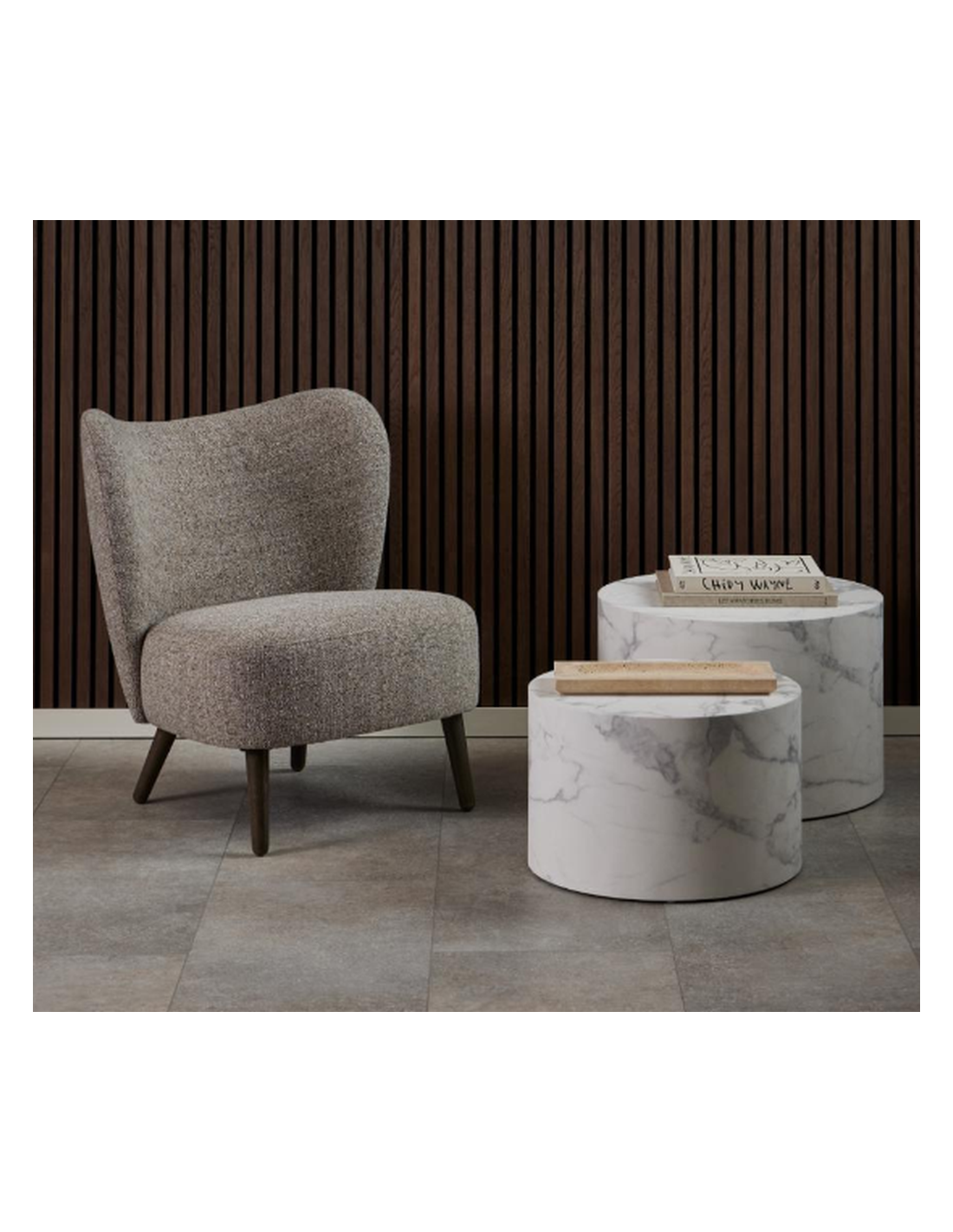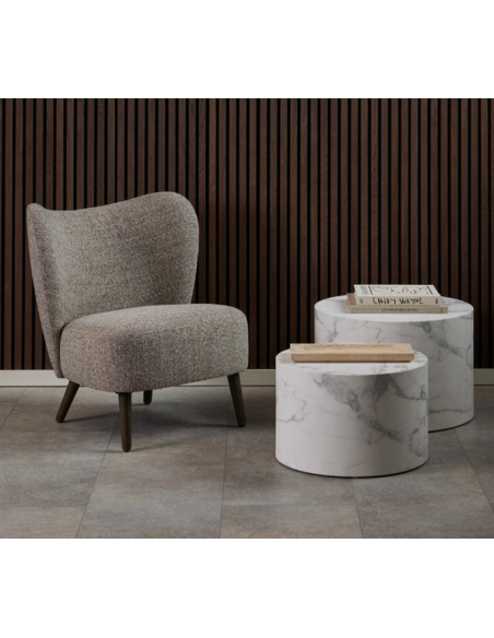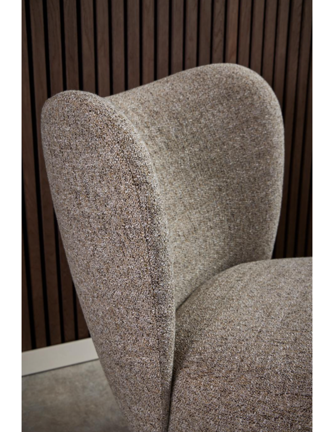 Mūsdienīgais atpūtas krēsls ELMONT. Vienkāršs, bet moderns dizains. Buklē tipa audums bez liekām šuvēm. Koka kājas, klasiskam krēsla dizainam.