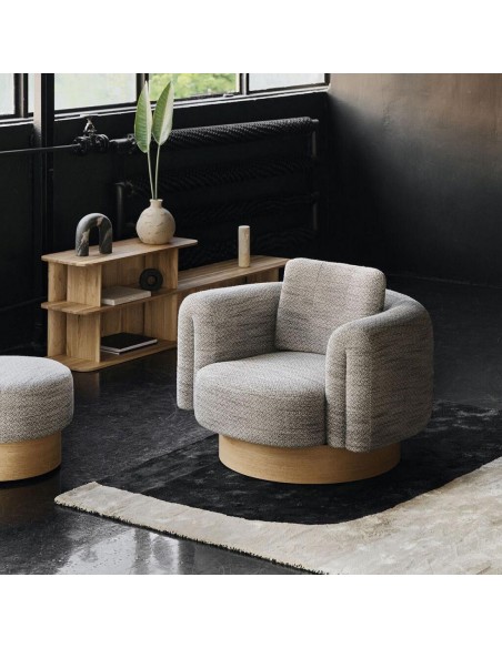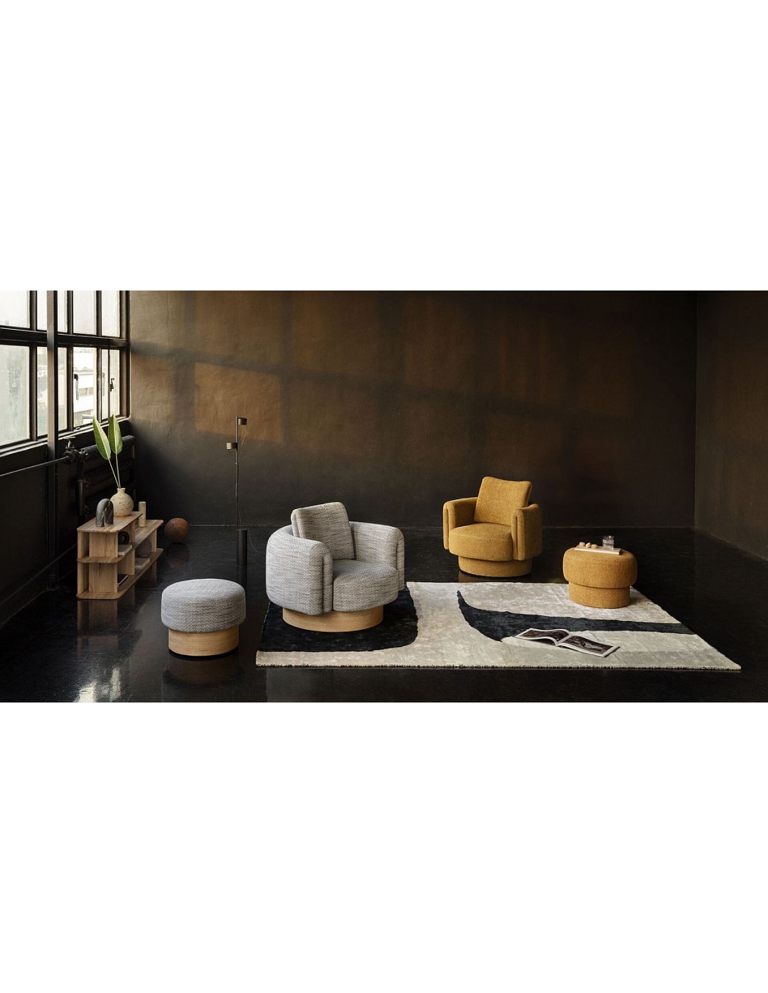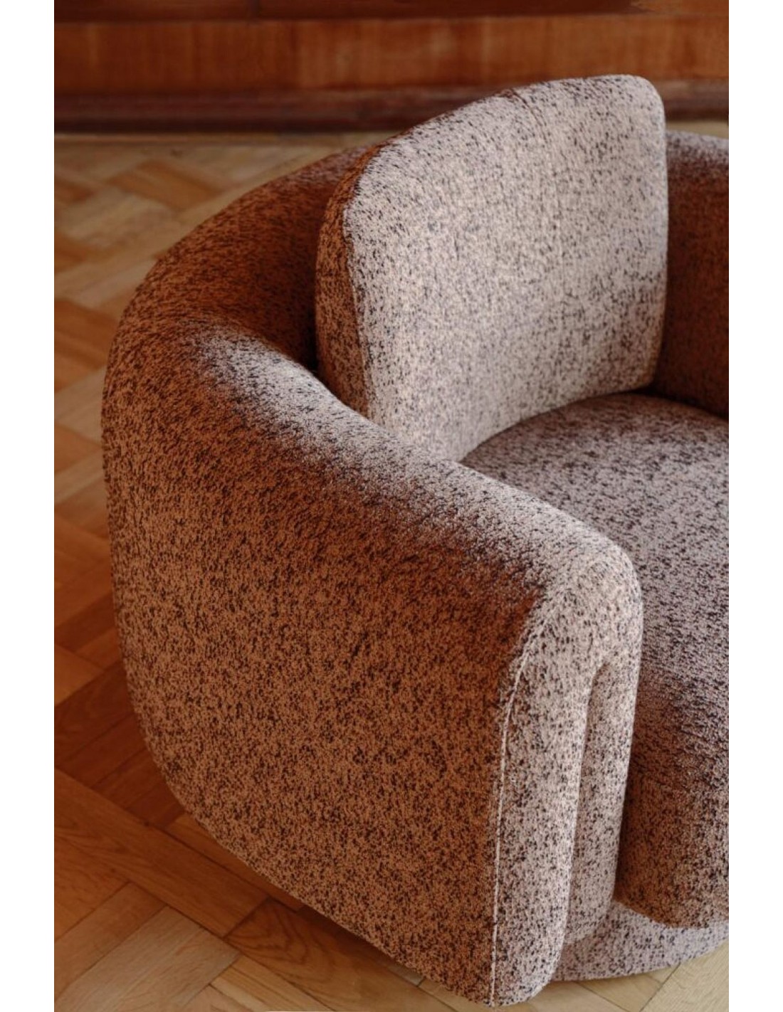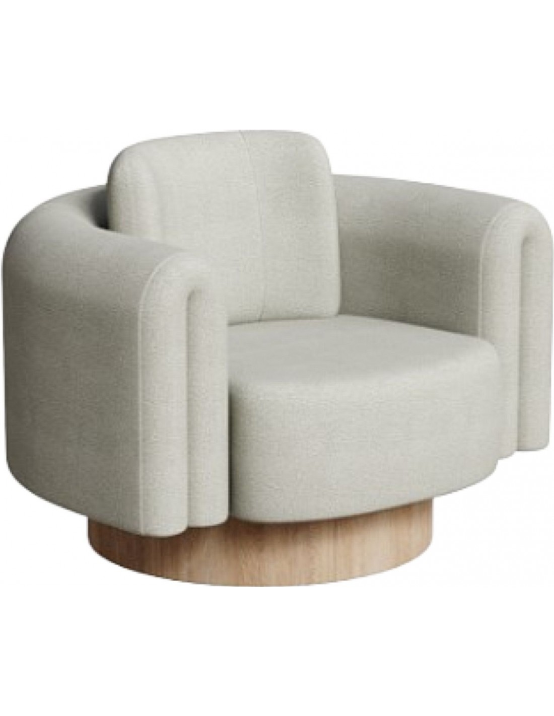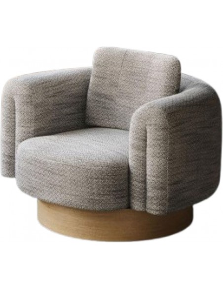 Izbaudiet paaugstinātu komfortu un mūsdienīgu dizainu ar šo stilīgo krēslu. Tam ir grezns, noapaļots siluets, kas pārklāts ar teksturētu pelēku audumu, piedāvājot gan eleganci, gan ērtību. Krēsls balstās uz stabila apaļa koka pamata, kas rada drosmīgu kontrastu un pievieno siltumu jebkurai telpai. Ideāli piemērots mūsdienu interjeriem, tā skulpturālā forma nodrošina lielisku atbalstu, vienlaikus kļūstot par ievērojamu elementu. Lieliski piemērots viesistabām, lasīšanas stūriem vai radošām studijām.