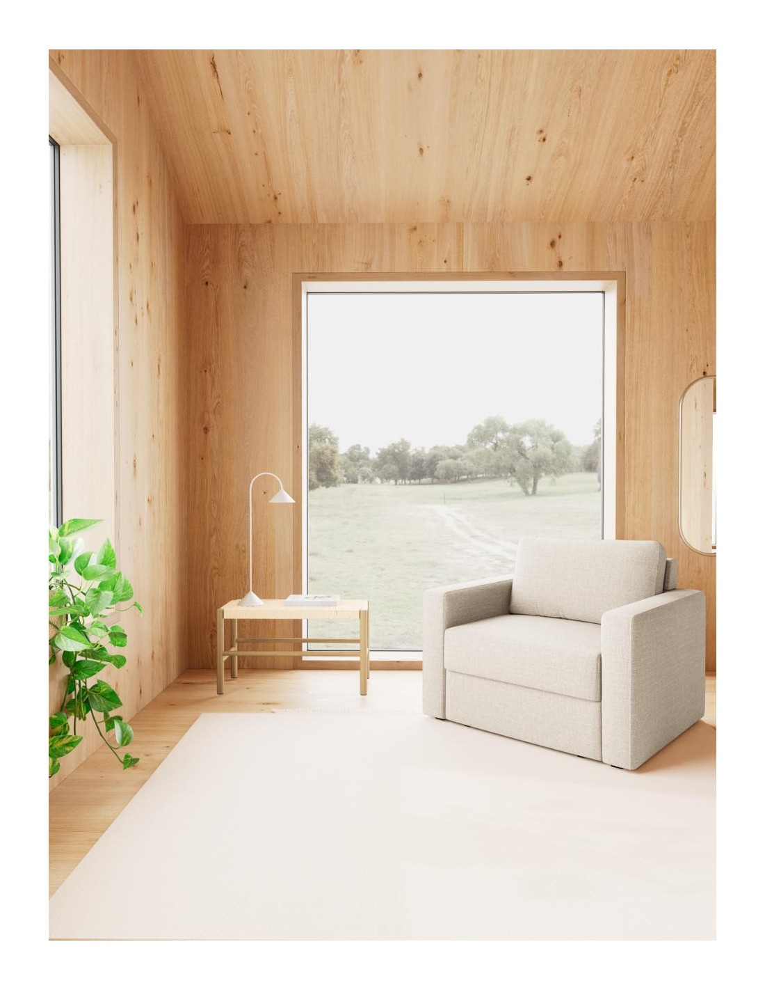 Atpūtas krēsls FLEURY izceļas ar savu klasisko dizainu, taisnām līnijām un ērtiem roku balstiem, kas piešķir mēbelei stabilitāti un eleganci. Bēškrāsas audums ar neuzkrītošu divtoņu efektu rada komforta sajūtu un viegli iederas dažādos interjeros.