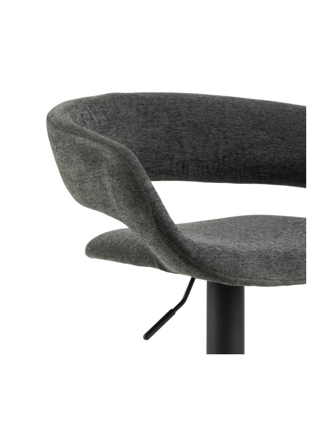 Elegants bāra krēsls, kas radīts ērtiem un neformāliem mirkļiem mājās. Sēdeklis ir apvilkts ar strukturētu audumu, kas apvieno estētiku ar funkcionalitāti.