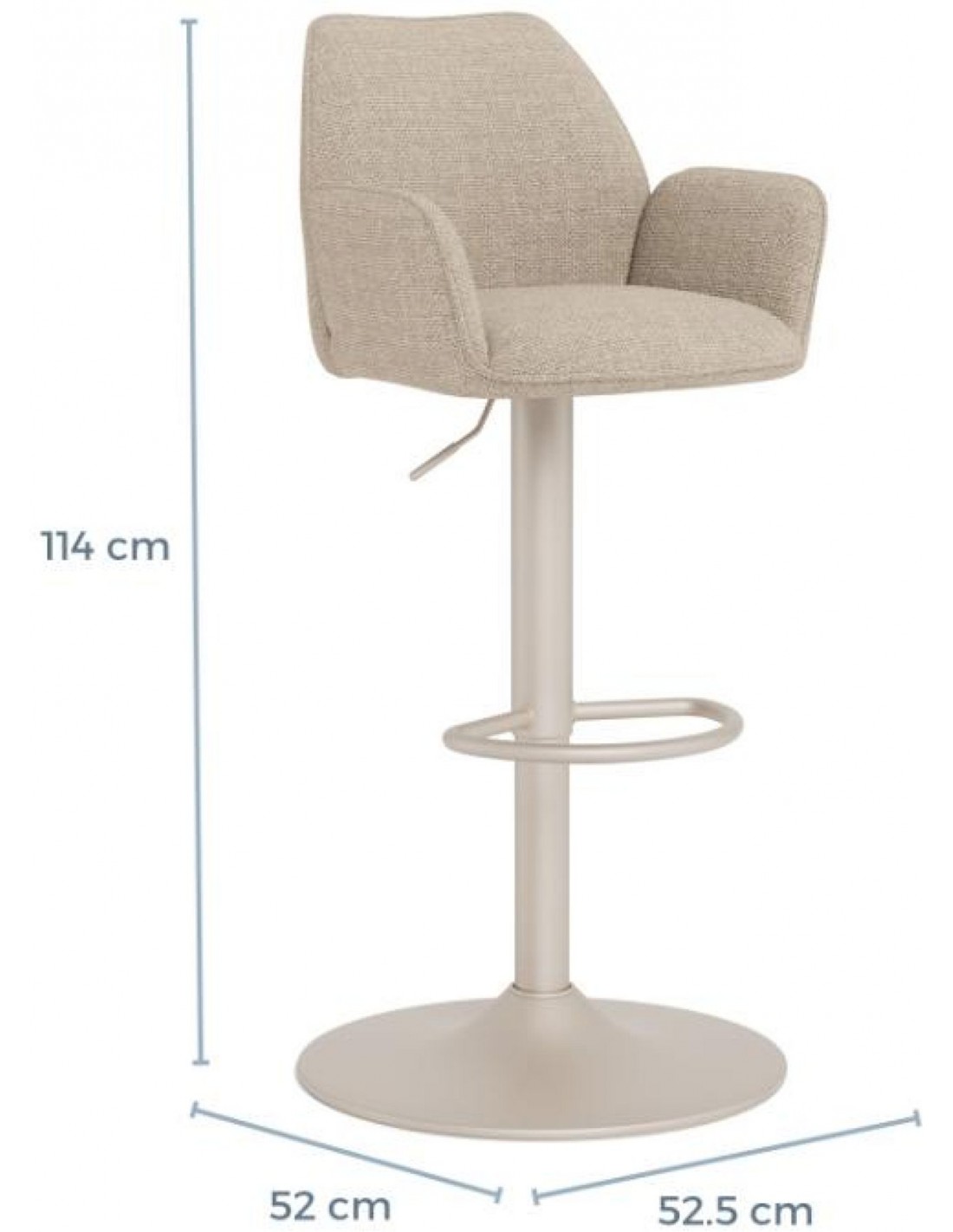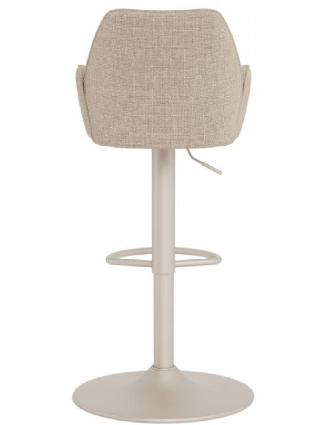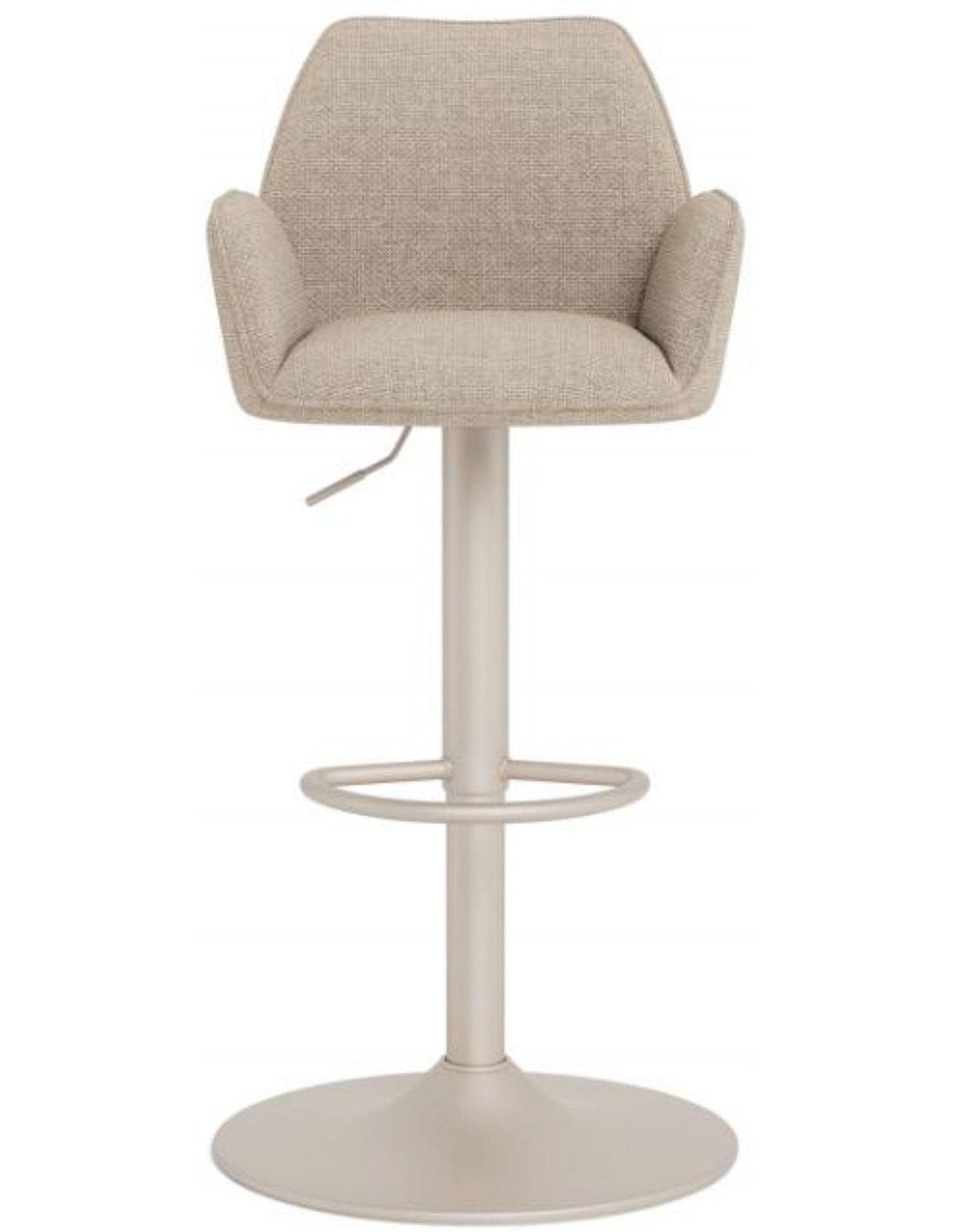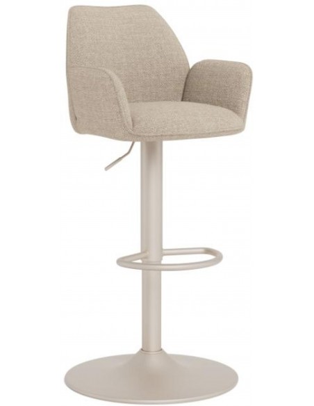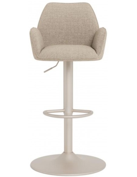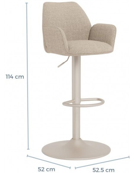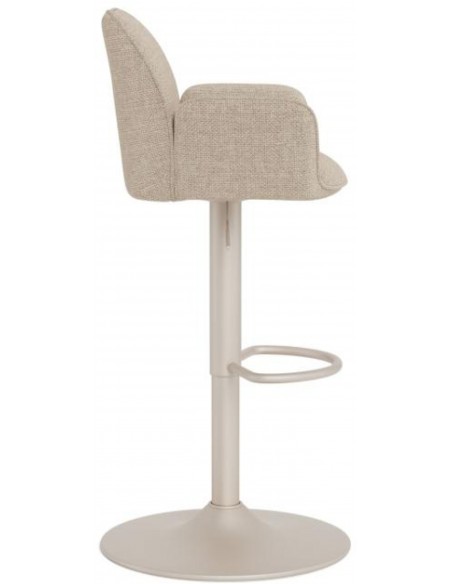 Šis ir augstumā regulējams bāra krēsls, kas ar savu bēšo, mīksto audumu piešķirs izsmalcinātību jebkurai telpai. Sēdekļa maigā līkne rada izsmalcinātu siluetu. Atbalstīts uz melnas pamatnes ar grozāmo funkciju, tas viegli apvieno stilu ar modernu funkcionalitāti.