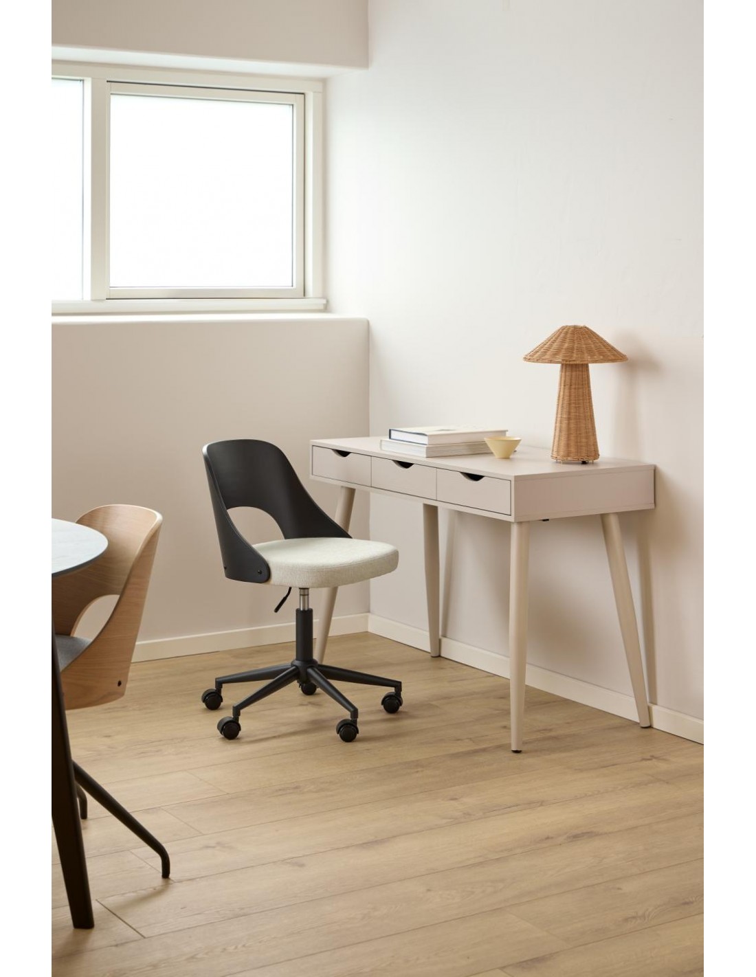Minimālistisks melamīna šķiedras darba galds NEPTUN. Ar trim atvilktnēm, kas uzturēs kārtību uz galda. Lieliska izvēle tiem, kas meklē vienkāršu, mazu rakstāmgaldu.