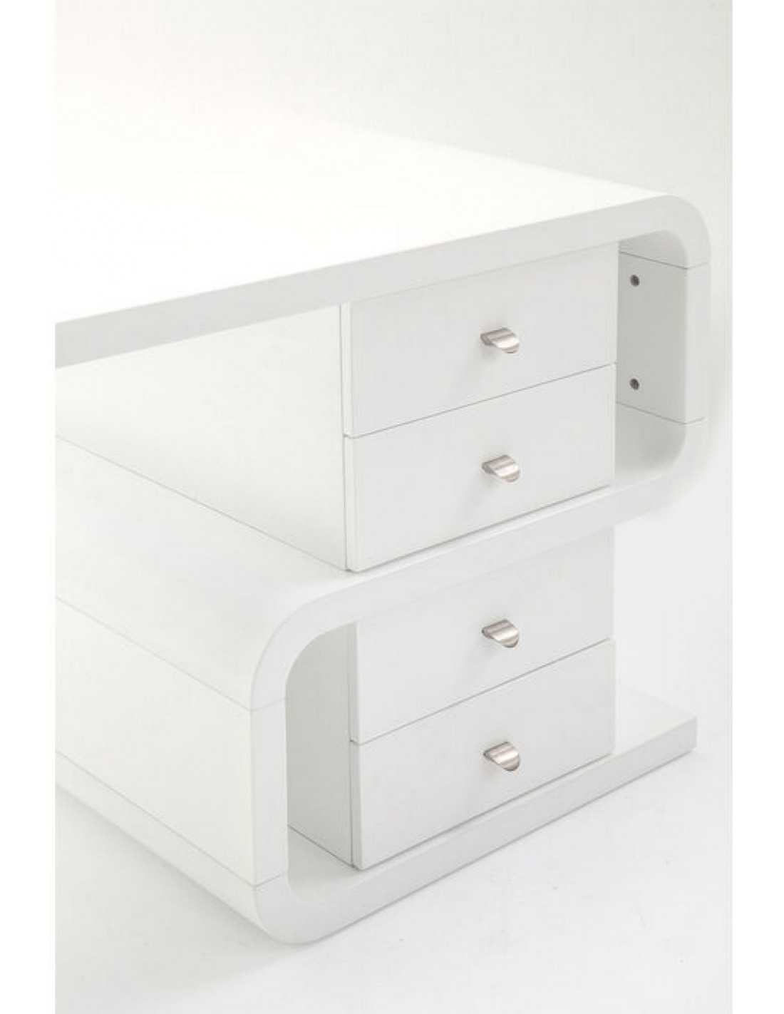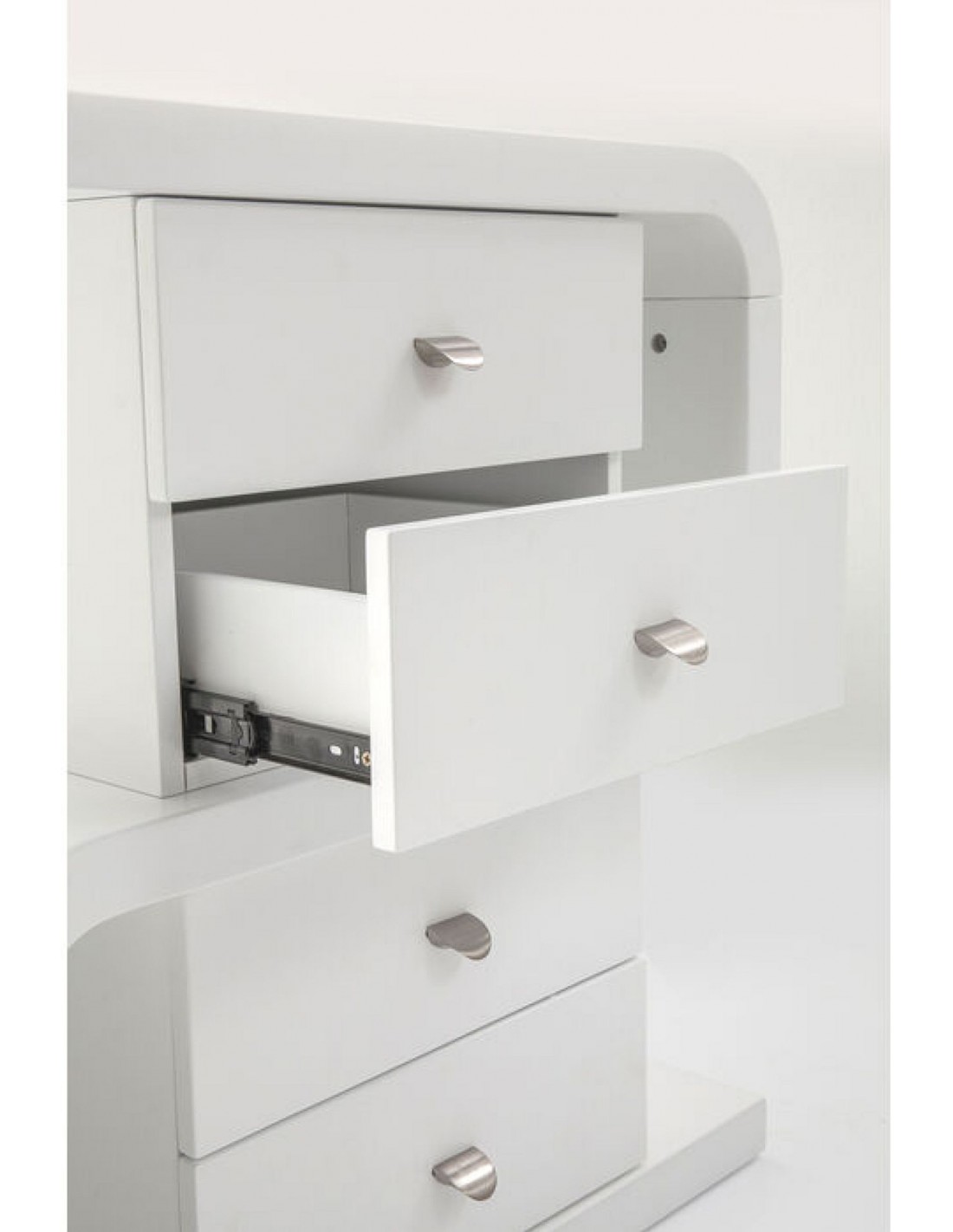 Orģināls rakstāmgalds ar elegantu retro izskatu, piemērots modernam mājas birojam. Stilīgi rokturi, kas izgatavoti no hromēta tērauda.