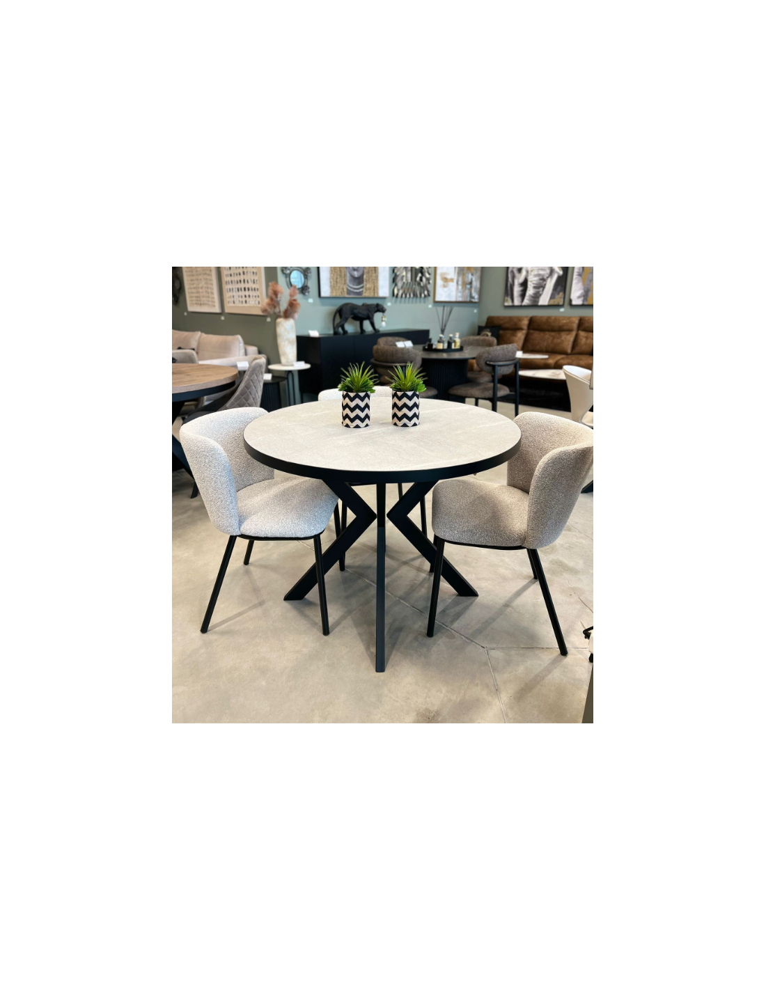 Apaļš izvelkamais galds EDEN ar lamināta galda virsmu. Kājas izgatavotas no metāla, pulverkrāsotas.