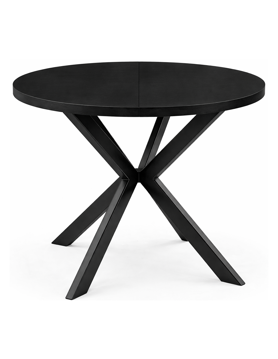 Apaļš izvelkamais galds EDEN ar lamināta galda virsmu. Kājas izgatavotas no metāla, pulverkrāsotas.