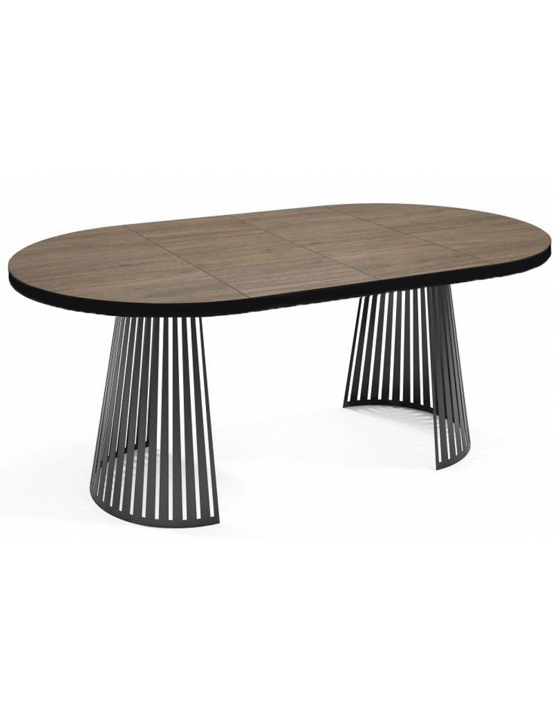 Izvelkams ēdamgalds NORE ar modernu ažūra pamatni un apaļu laminētu galda virsmu. Estētika, funkcionalitāte un elegance vienā.