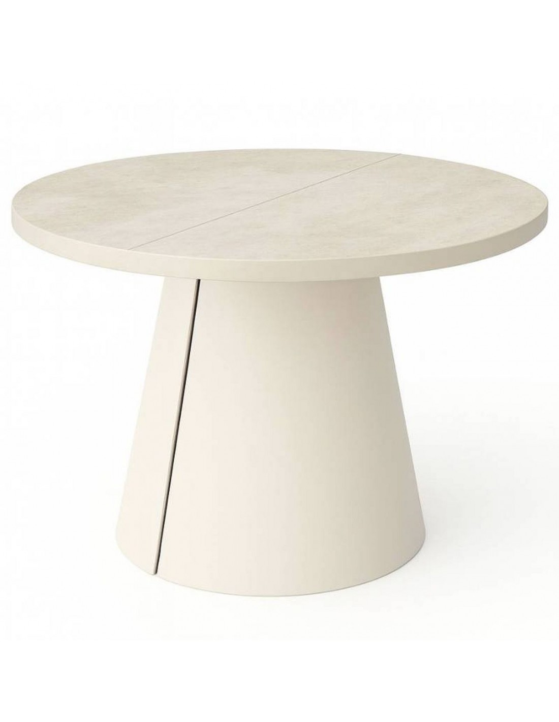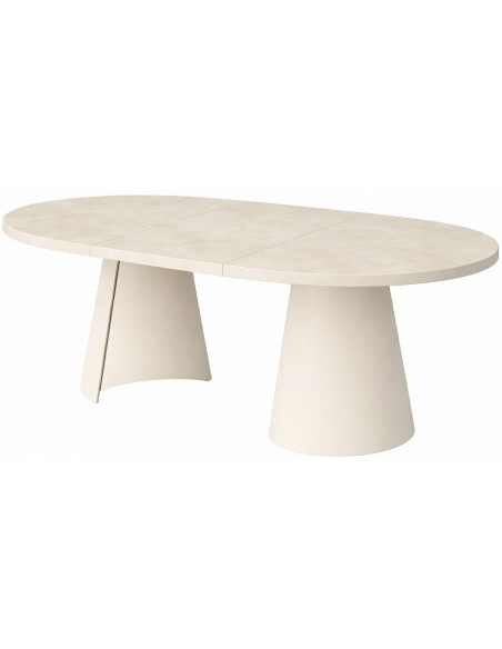 Izgatavots pēc Accanto grupas pasūtījuma (EG)Apaļais izvelkamais galds MALMA ir stilīgs un stabils ēdamgalds ar lamināta galda virsmu un vieglu, platu konusa tipa metāla kāju.