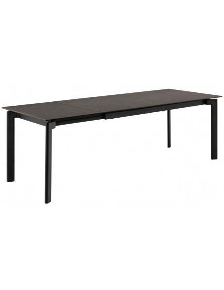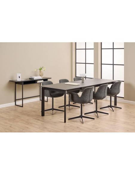 Šis ēdamgalds apvieno mūsdienīgu dizainu ar izturīgiem materiāliem. Keramikas virsmai ir smalki raksti, tā ir izturīga pret skrāpējumiem, karstumizturīga un viegli kopjama, padarot to ideāli piemērotu ikdienas lietošanai. Tērauda rāmis ar matētu pulverkrāsojumu piešķir galdam stabilitāti un modernu raksturu. Pateicoties tā izmēram, šis galds ērti uzņem ģimeni un viesus, padarot to ne tikai par praktisku mēbeli, bet arī par ēdamistabas galveno akcentu. Tā ir izvēle, kas apvieno funkcionalitāti, stabilitāti un eleganci.