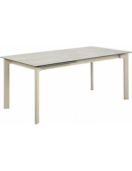 Izvelkams galds HURON - pelēkbrūna ANISTA ROUGH keramikas virsma, bēša tērauda pamatne, 180–240x90x76 cm.