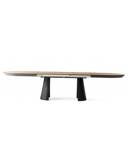 Izgatavots pēc Accanto grupas pasūtījuma (LU)Izvelkams, plats galds KOALA ar izturīgu HPL galda virsmu un melnām, ovālām, metāla kājām. To var izmantot mājās, un tas ir lieliski piemērots jūsu svinībām un ballītēm. Galdu ir iespējams pagarināt līdz 260 cm. Papildus plātnes glabā galda iekšpusē. Var apsēdināt līdz 18 cilvēkiem. Ir iespēja izvēlēties galda virsmas un kāju krāsu.