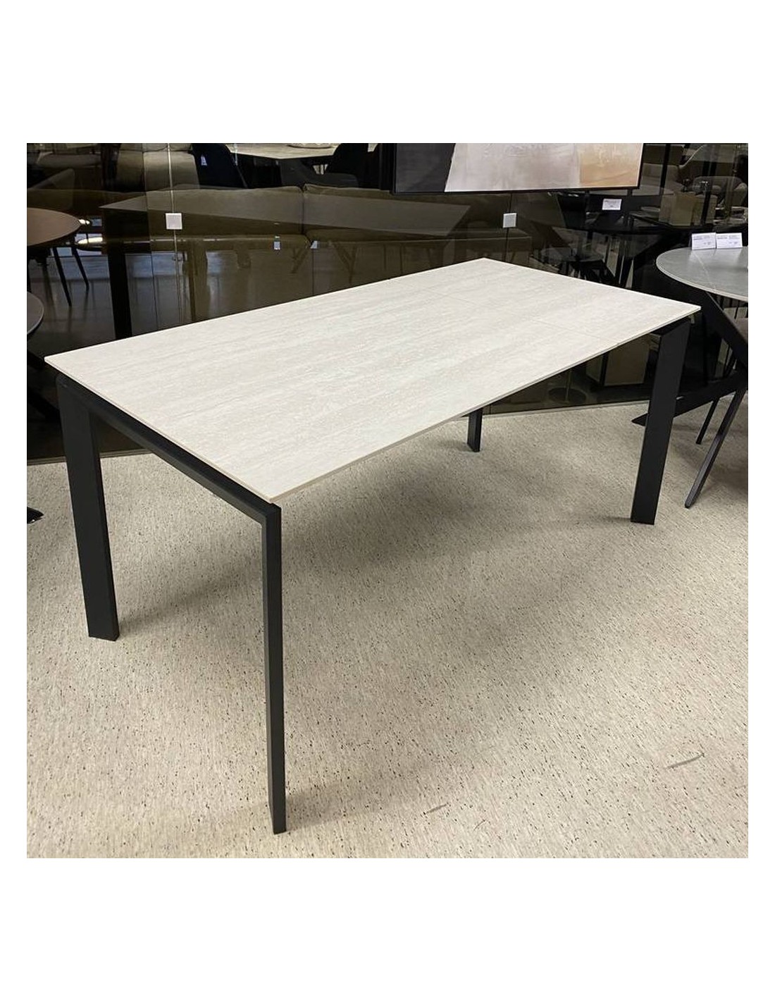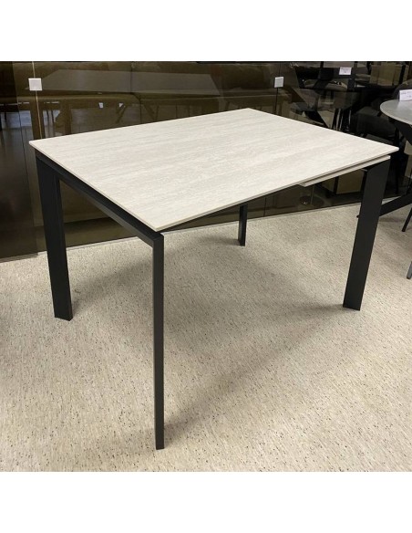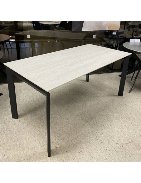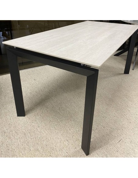 LOREO galds ir moderns keramikas pusdienu galds. Ne tikai elegants, bet arī funkcionāls. Viegli pagarināms no 110 līdz 160 cm. Gaišā galda virsma un melnās metāla kājas kontrastē un veido mūsdienīgu un modernu duetu.