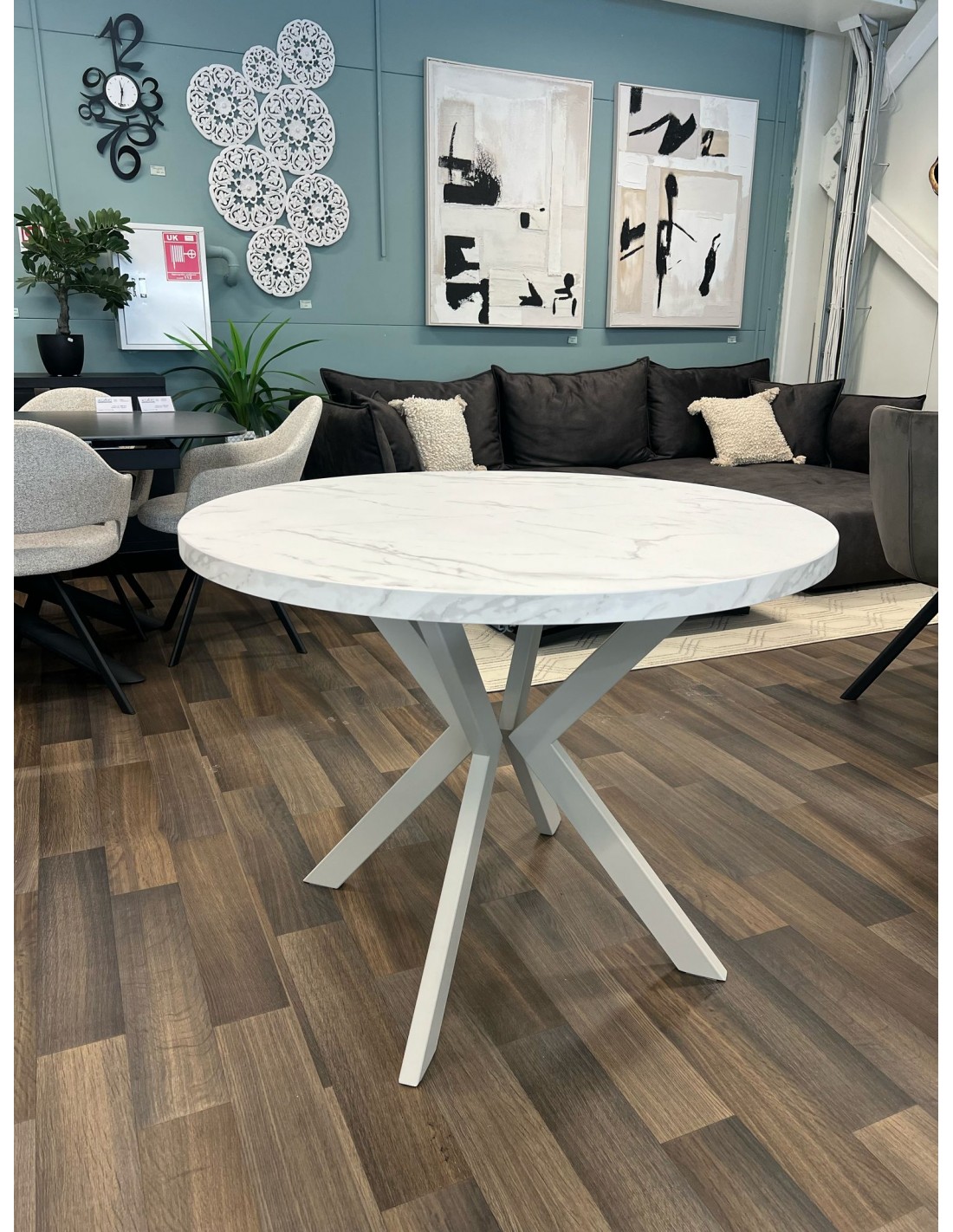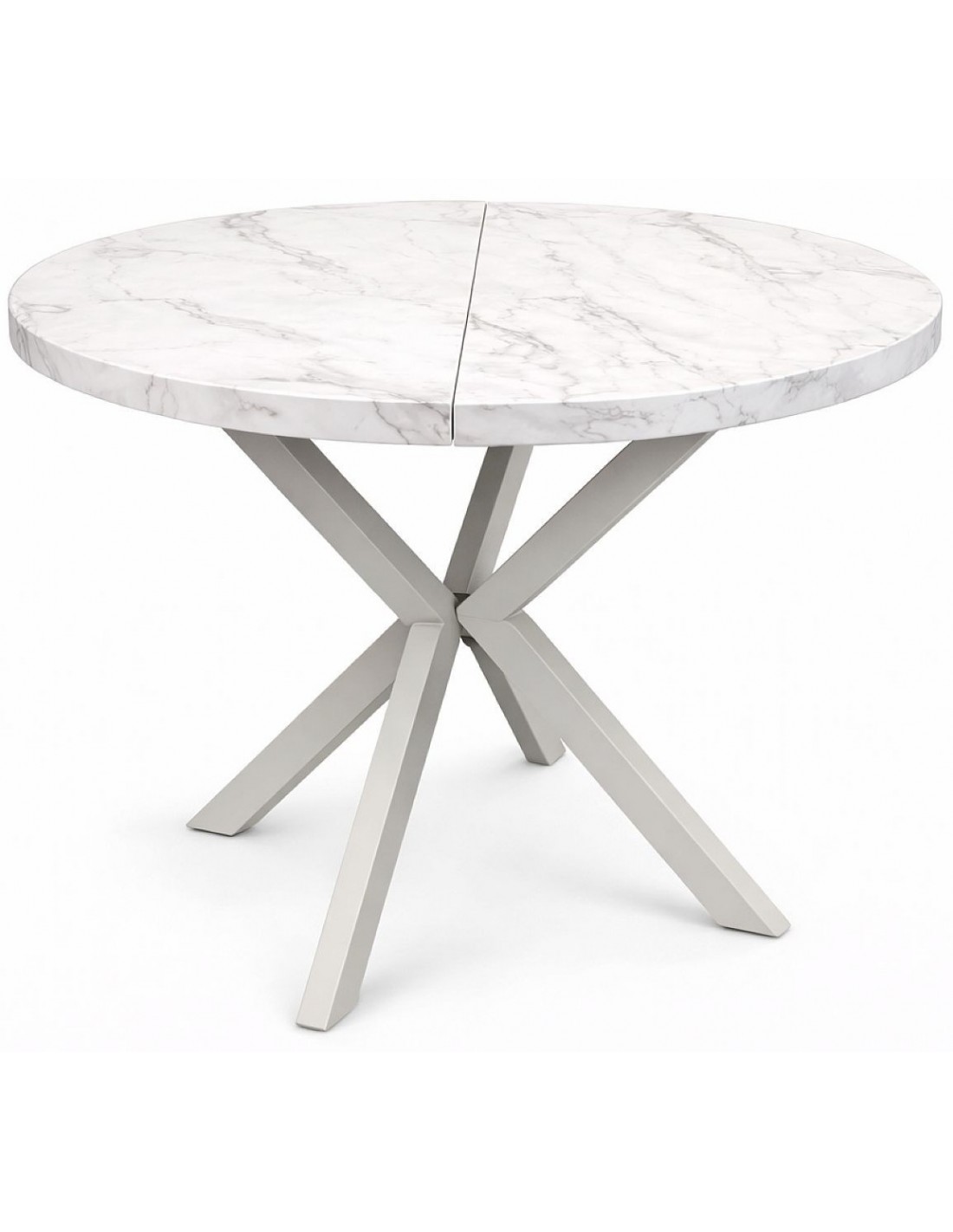 Apaļš izvelkamais galds EDEN ar lamināta galda virsmu. Kājas izgatavotas no metāla, ​​pulverkrāsotas.
