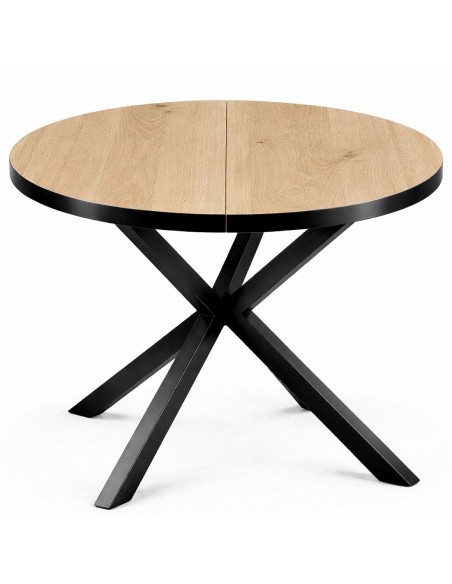 Apaļš izvelkamais galds EDEN ar lamināta galda virsmu. Kājas izgatavotas no metāla, ​​pulverkrāsotas.