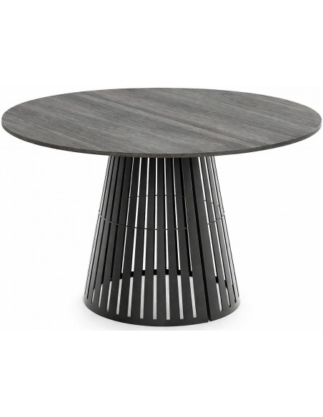 Izvelkams ēdamgalds RONE ar modernu ažūra pamatni un apaļu finierētu galda virsmu. Estētika, funkcionalitāte un elegance vienā.