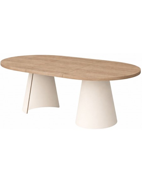 Izgatavots pēc Accanto grupas pasūtījuma (EG)Apaļais izvelkamais galds MALMA ir stilīgs un stabils ēdamgalds ar lamināta galda virsmu un vieglu, platu konusa tipa metāla kāju.