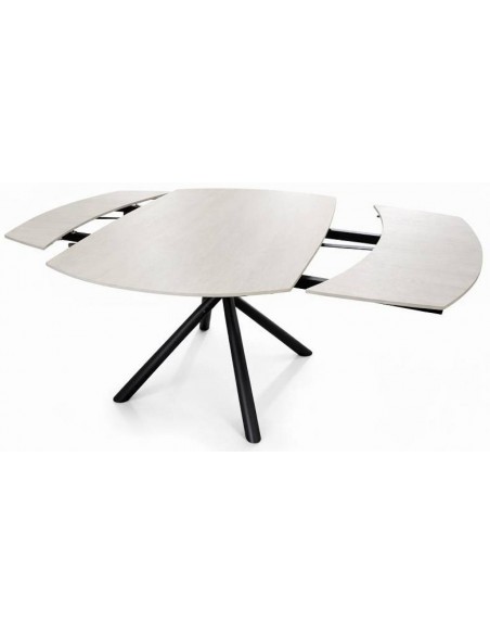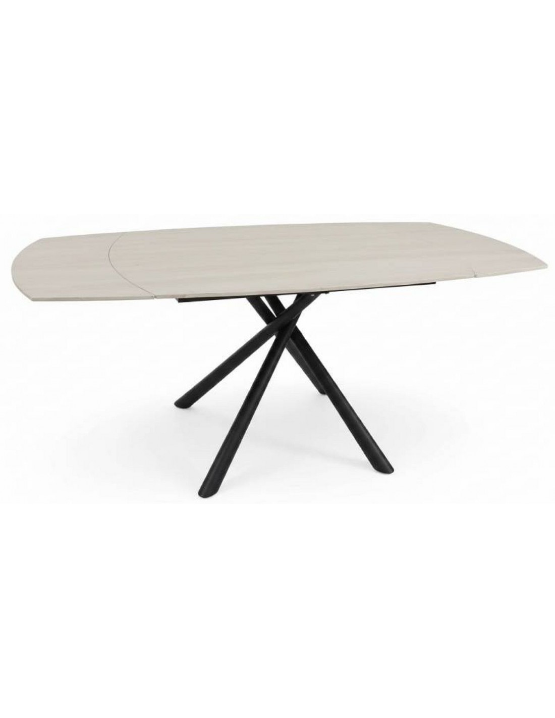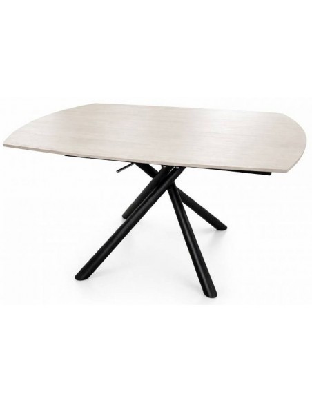 Izvelkams galds TORRETTA - vienkārši un eleganti atlokāms: pagriežot vidējo daļu, galds pagarinās abos virzienos. Izvelkams no 120 līdz 179 cm. Galda virsma gaiši brūnā krāsā ar melnām kājām piešķir interjeram modernu pieskārienu un nodrošina ērtu vietu pulcēšanās reizēm.