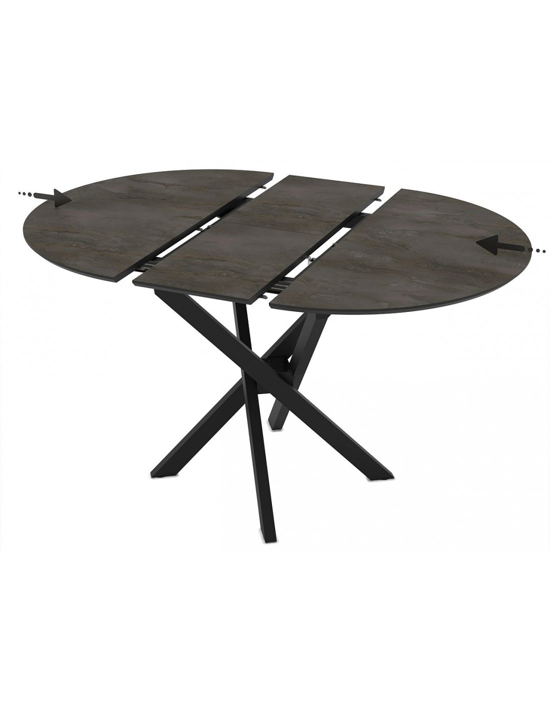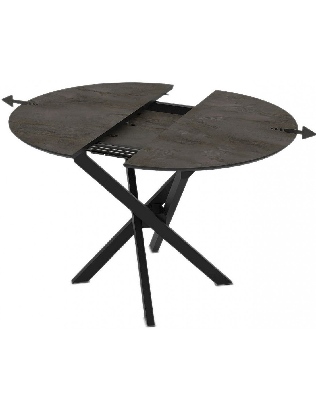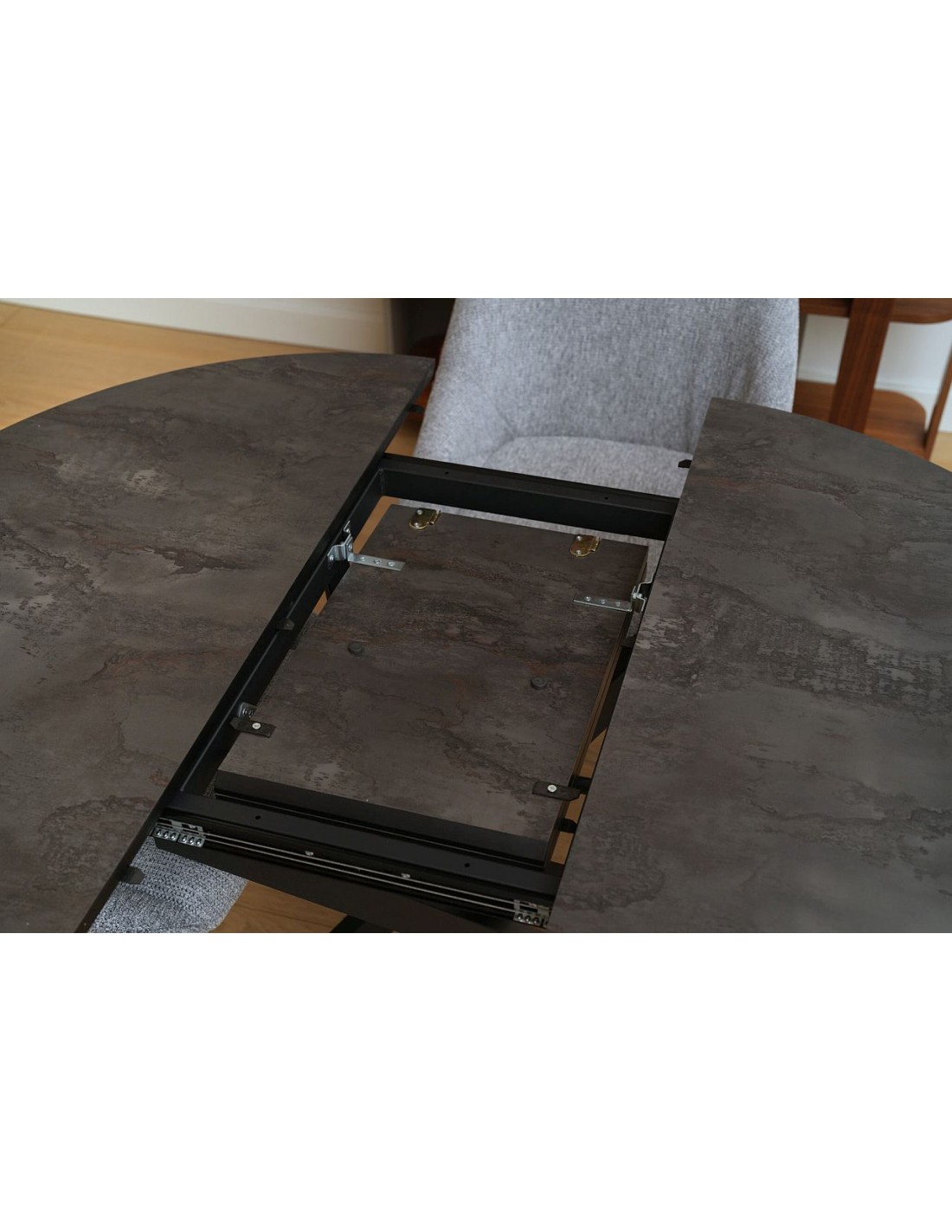 Komplektā ietilpst vien pagarinājums, kas iestrādāts galda mehānismā. Galda virsmai iespējamas dažādas krāsas.