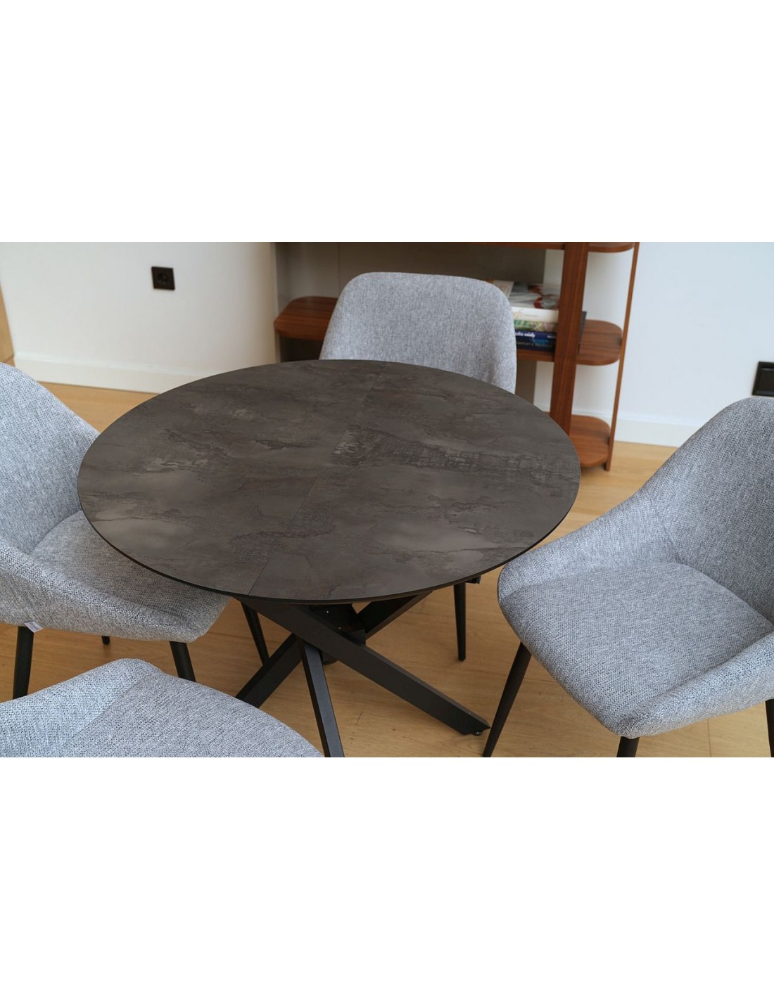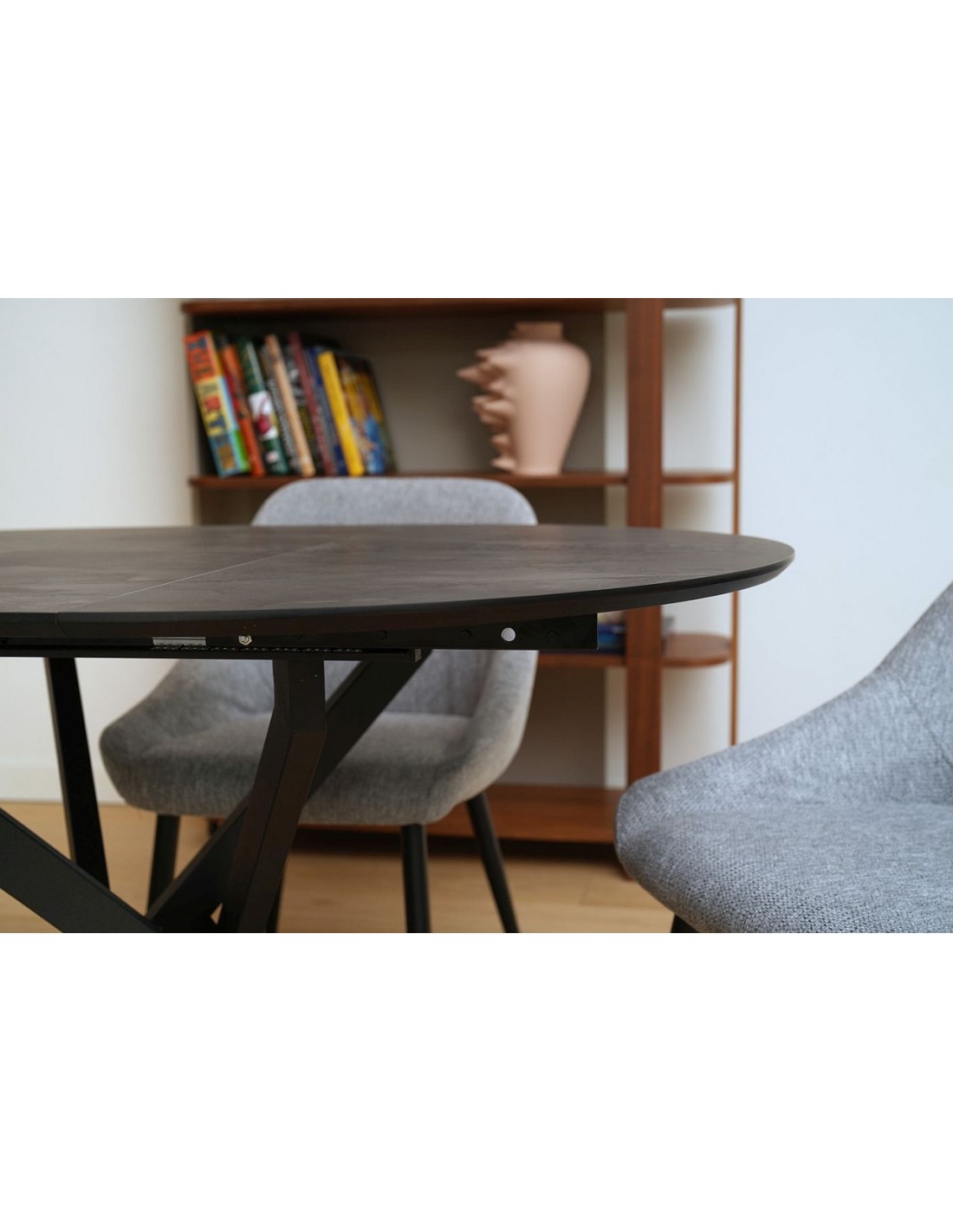 TARU apaļais galds (Ø 90 cm) ir praktisks un elegants risinājums gan virtuvei, gan ēdamistabai. Pateicoties iebūvētajam pagarināšanas mehānismam, galds viegli izvelkams līdz 115 cm, nodrošinot vairāk vietas viesiem vai ģimenes maltītēm. Stabilā metāla kāju konstrukcija piešķir modernu izskatu un labu izturību ikdienas lietošanai. Galda virsma pieejama dažādās krāsās, lai to varētu viegli pieskaņot jebkuram interjeram. TARU galds apvieno funkcionalitāti, stilu un komfortu vienā dizainā.