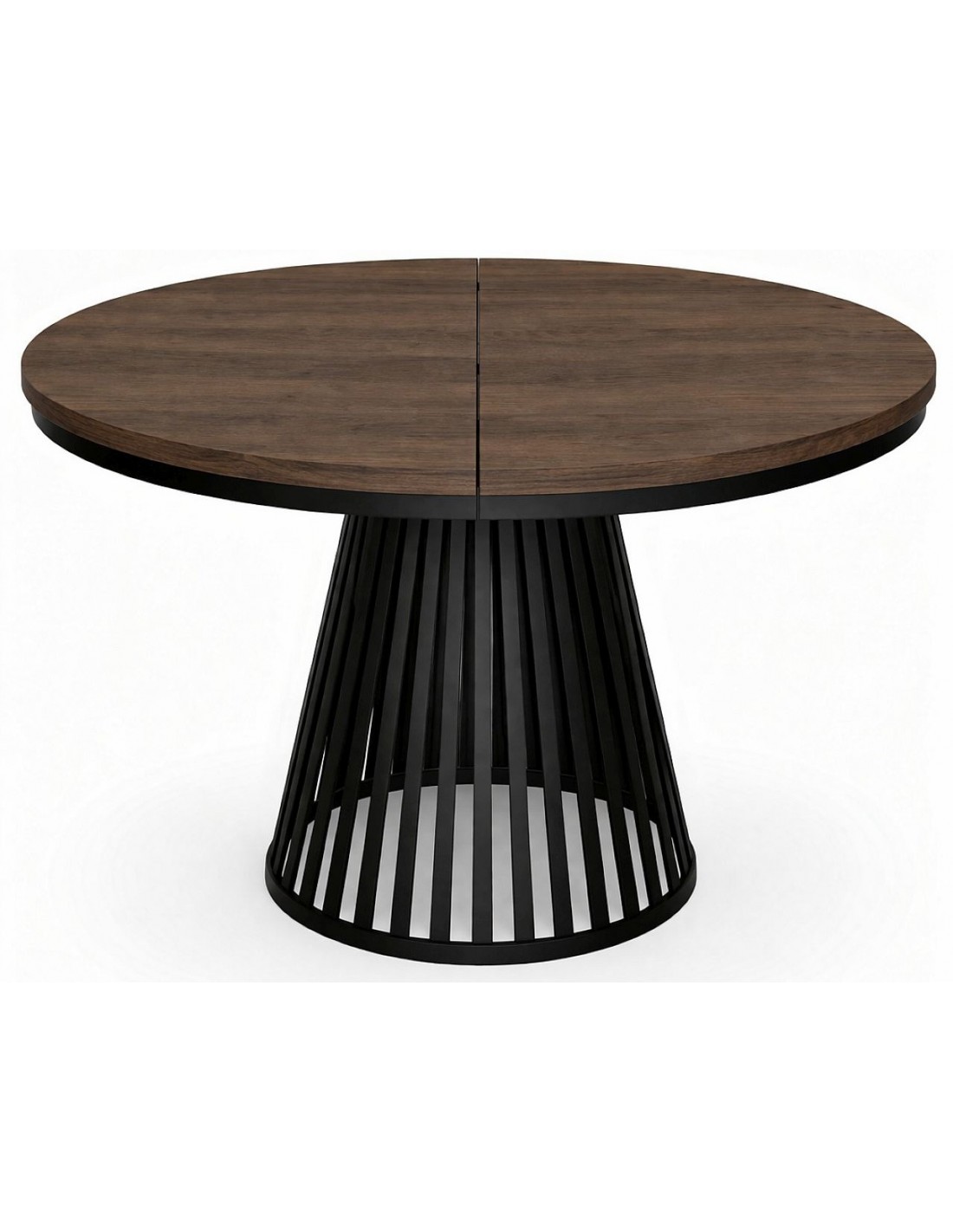Izvelkams ēdamgalds NORE ar modernu ažūra pamatni un apaļu laminētu galda virsmu. Estētika, funkcionalitāte un elegance vienā.
