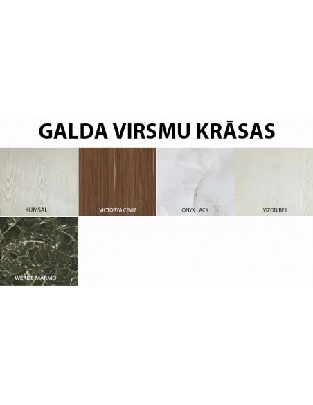 Galda virsmu iespējams pasūtīt izvēloties norādītās krāsas.