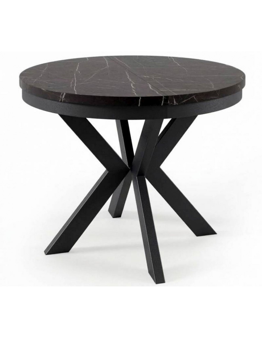 Apaļš izvelkamais galds EDEN ar lamināta galda virsmu. Kājas izgatavotas no metāla, pulverkrāsotas.