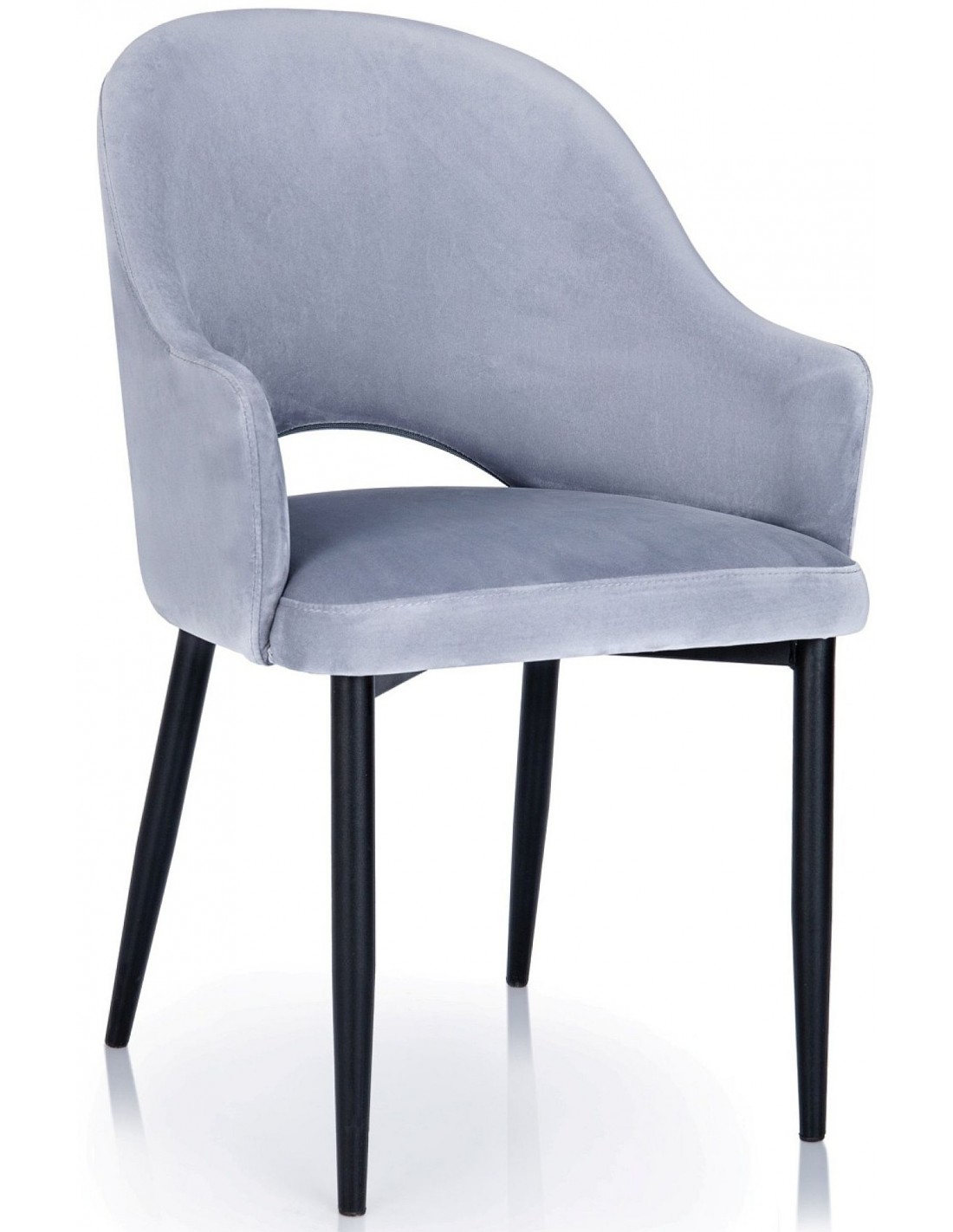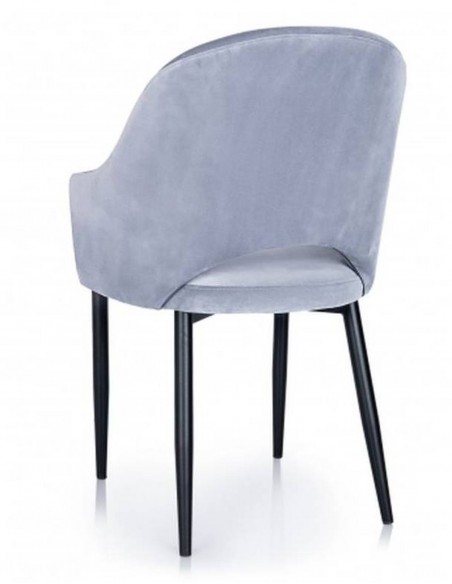 Ēdamistabas krēsls - ROSARIO. Sēdeklis ir pārklāts ar gobelēnu vai kādu citu audumu, un kājas ir melnas metāla vai koka. Lieliski piemērots jebkuram interjeram ēdamistabā, jo var mainīt audumu, tā krāsu un kāju krāsu