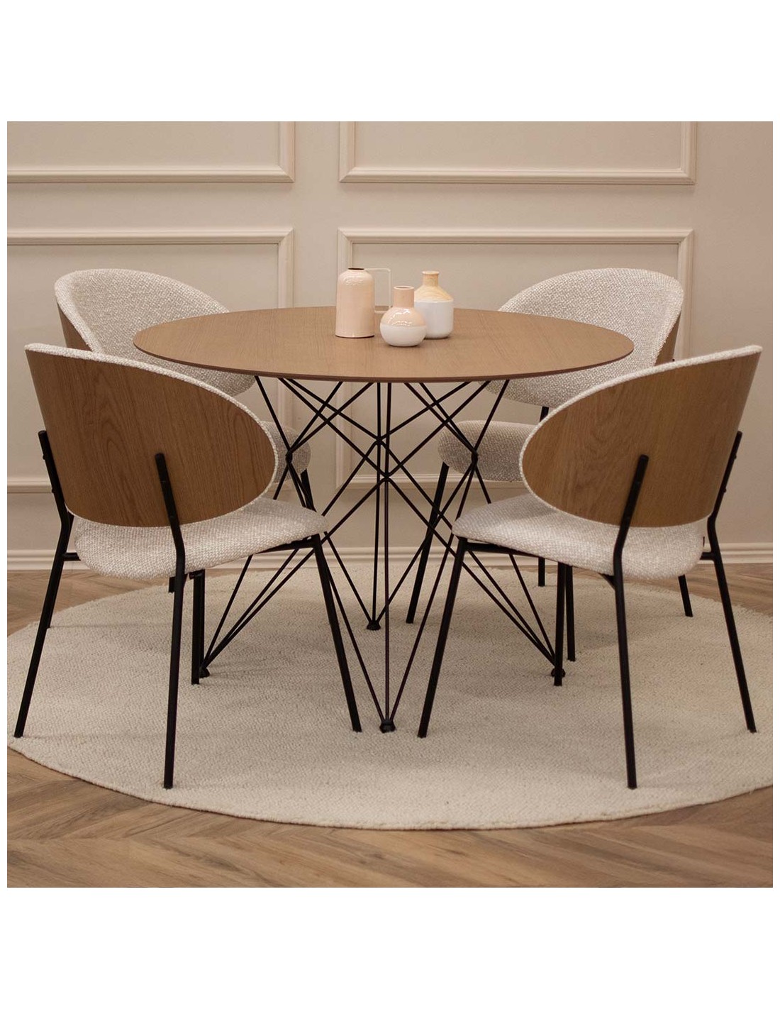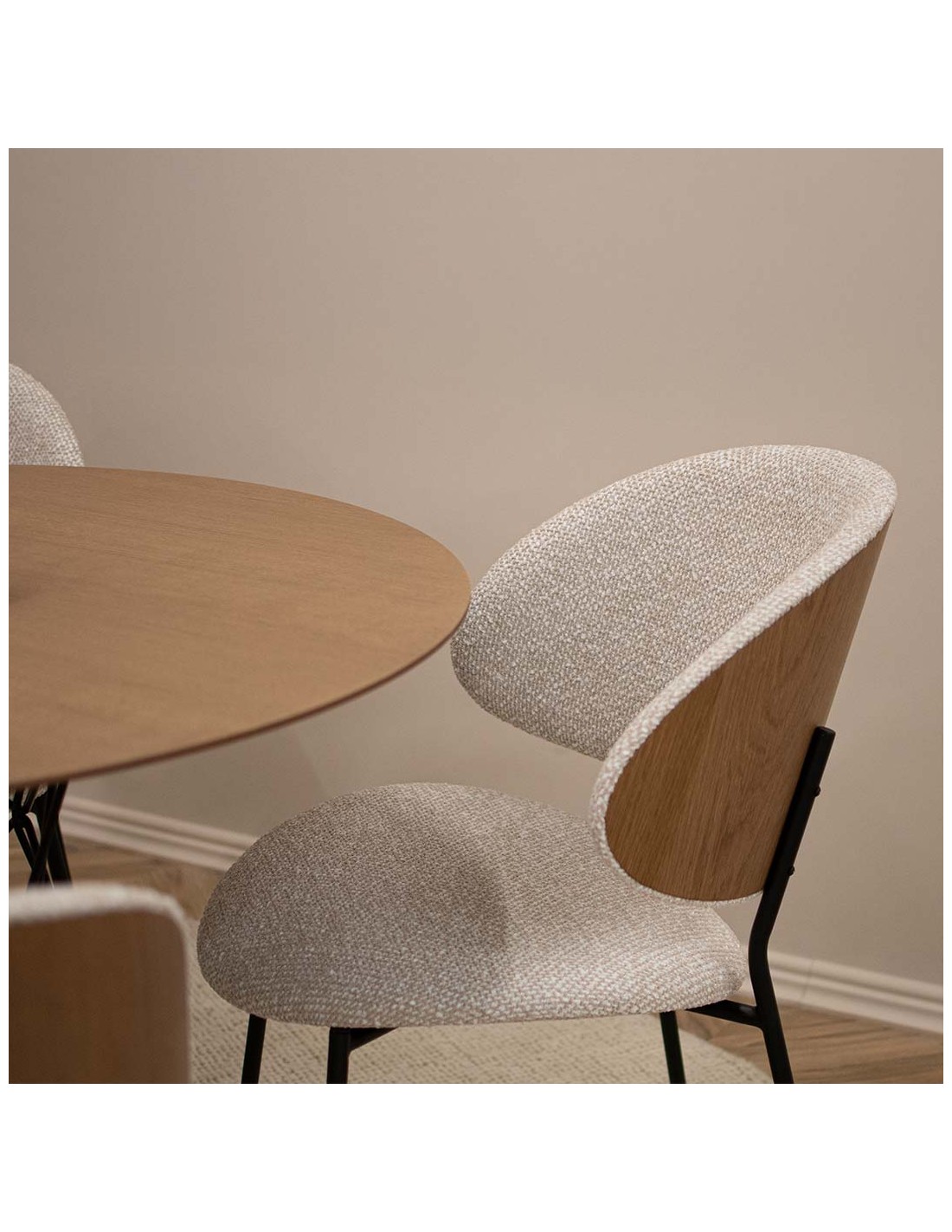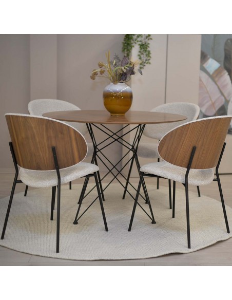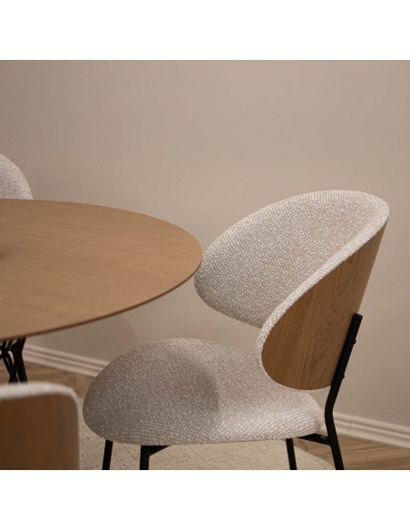Krēsls ALEXIS ar ērti izliektu atzveltni. Pārklāts ar mīkstu velūru ar metāla kājām. Atzveltnes ārējo daļu var izvēlēties ar finiera apdari ozola vai riekstkoka krāsā.