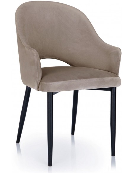 Ēdamistabas krēsls - ROSARIO. Sēdeklis ir pārklāts ar gobelēnu vai kādu citu audumu, un kājas ir melnas metāla vai koka. Lieliski piemērots jebkuram interjeram ēdamistabā, jo var mainīt audumu, tā krāsu un kāju krāsu
