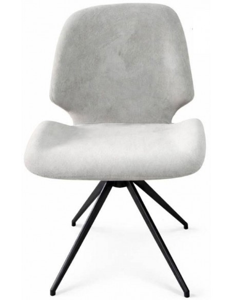 Plats un ērts gaiši pelēks velūra auduma krēsls ar melnām metāla kājām un grozāmo funkciju ir stilīga un funkcionāla izvēle ēdamzonai.