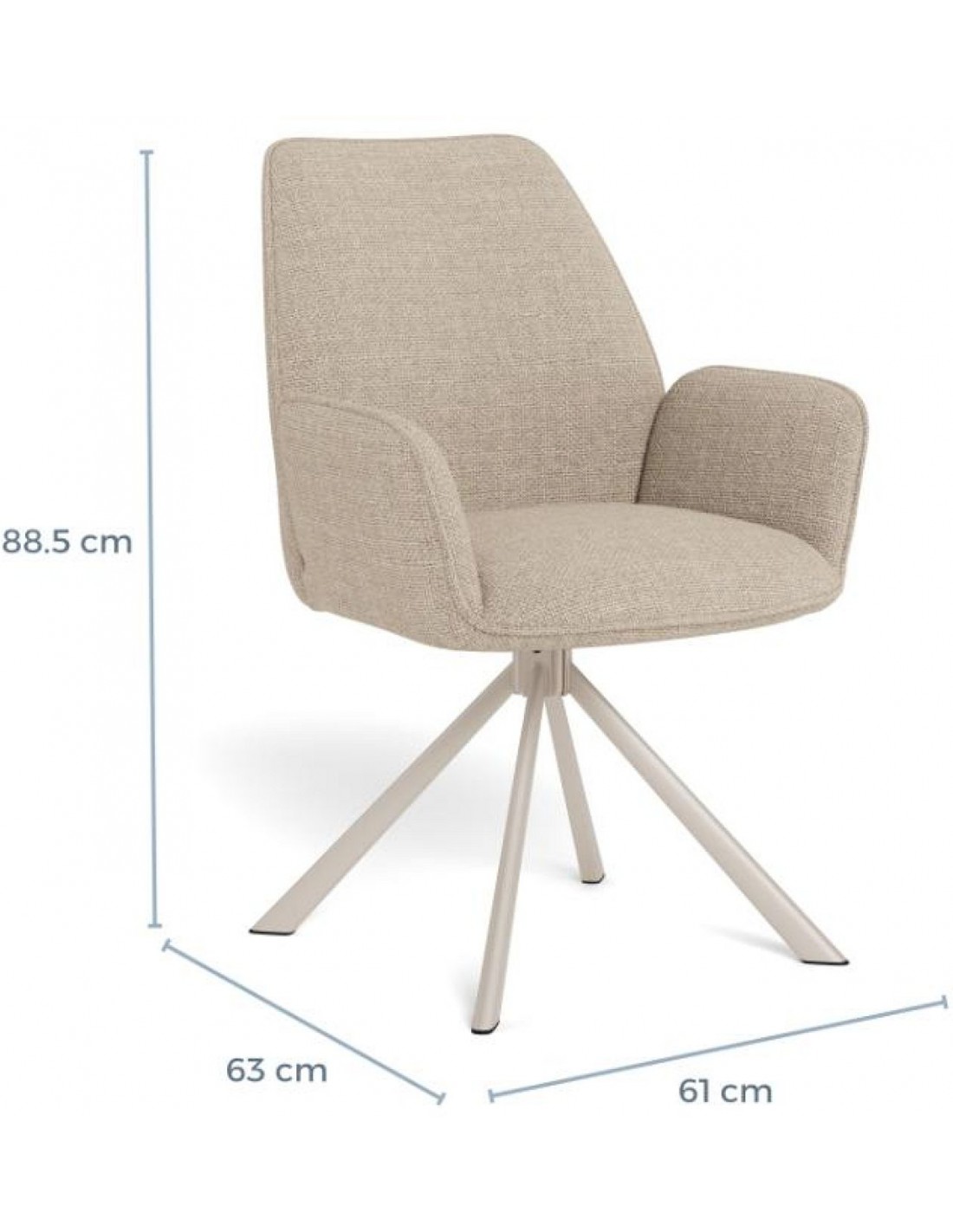 Krēsls ar unikālu dizainu, ar ekskluzīvu griezumu starp muguras balstu un roku balstiem. Elegants, glīts austs audums, lielisks akcents moderna stila interjerā. Tas izdaiļos ne tikai ēdamistabu, bet arī darba kabinetu vai citu jūsu mājas telpu. Maksimālais svars ir 110 kg. Krēslam ir 360 grādu rotācijas funkcija.