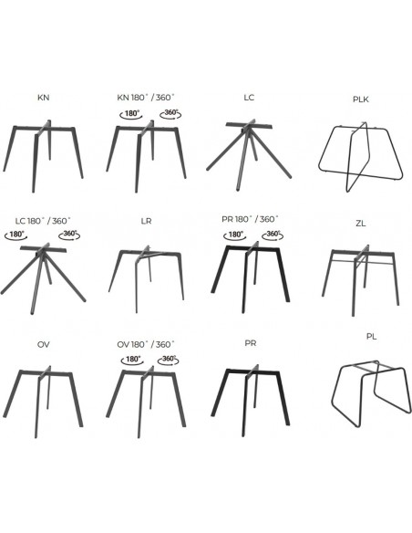 Krēslam iespējams pasūtīt dažāda veida kājas un izvēlēties to krāsu. Konkrētiem kāju modeļiem pieejama arī rotācijas funkcija - 180 grādu vai 360 grādu.