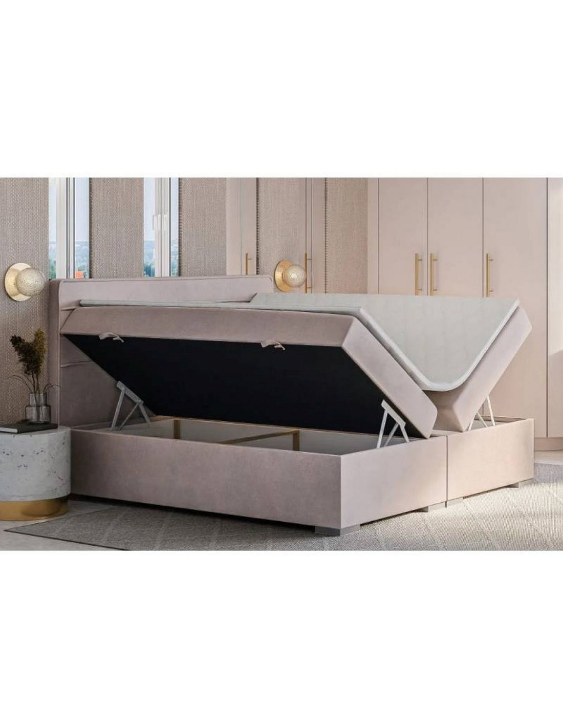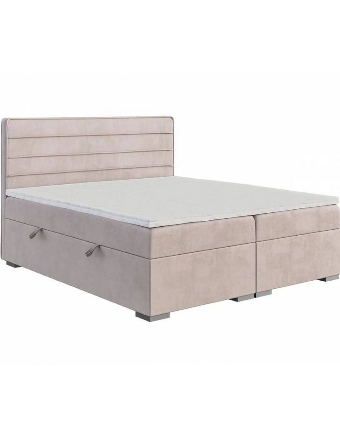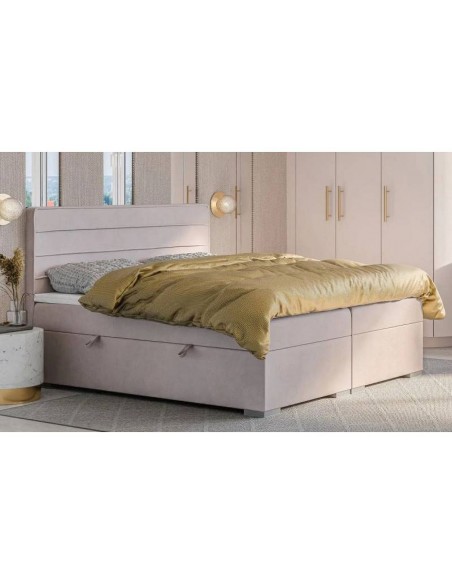 Eleganta gulta BENETTI, kuras galvgalis ir nošūts ar horizontālām šuvēm, ar divām gultasveļas kastēm un daudzslāņu konstrukciju ērtam miegam.