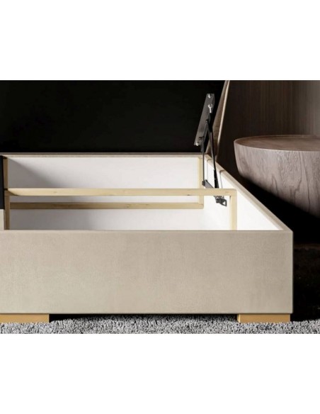 Gultai ir divas ietilpīgas veļas kastes, kas atveras no priekšpuses – ērts risinājums gultasveļas, sezonas apģērbu vai citu priekšmetu glabāšanai. 4 cm augstās koka kājas nodrošina vieglumu un atvieglo grīdas kopšanu zem gultas.
