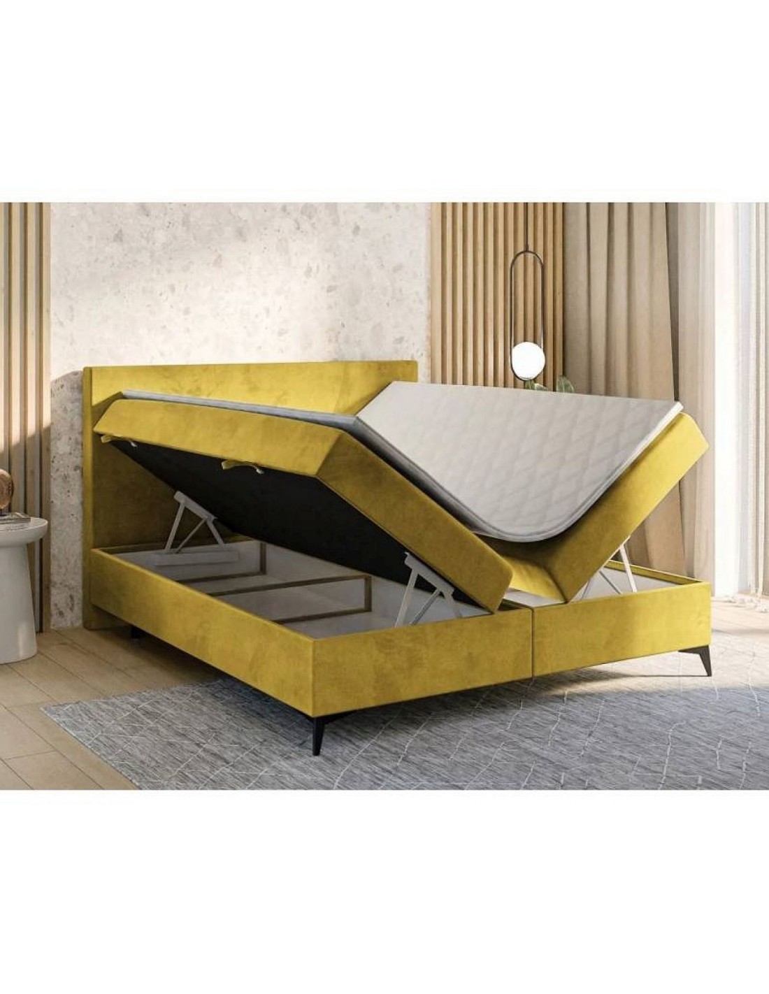 Izturīgā pamatne, kas izgatavota no dēļiem, garantē stabilitāti, savukārt izmantotais neslīdošais audums palielina drošību. Melnās, matētās vai hroma krāsas metāla kājas (13 cm augstas) piešķir modernu akcentu un nodrošina konstrukcijas izturību. 54 cm augstā daudzslāņu konstrukcija nodrošina ergonomisku gulēšanas līmeni, padarot šo gultu par praktisku un stilīgu izvēli jebkurai guļamistabas telpai.