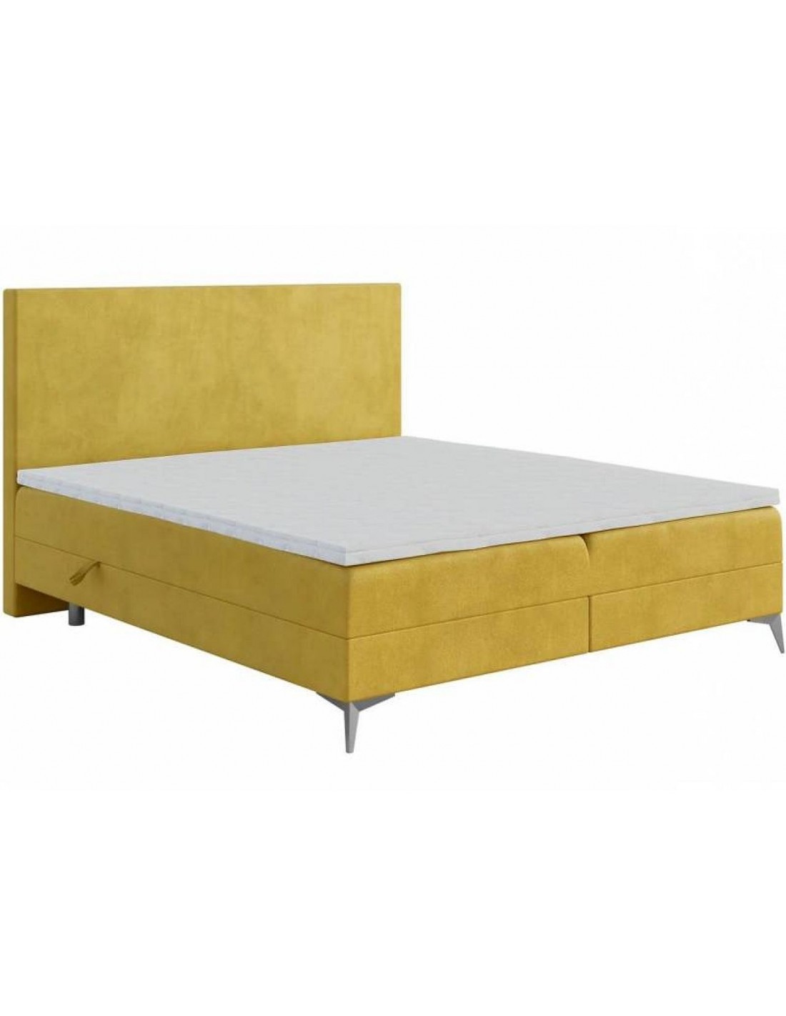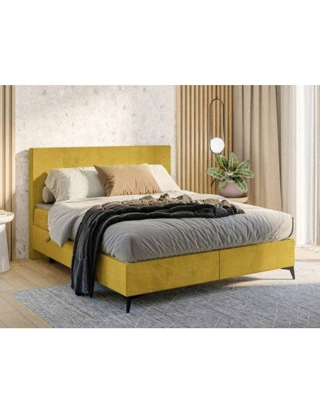 Moderna gulta ar vienkāršu galvgali, ērtu matraci un metāla kājām ir stilīgs risinājums jūsu guļamistabai.