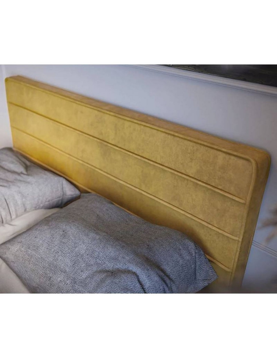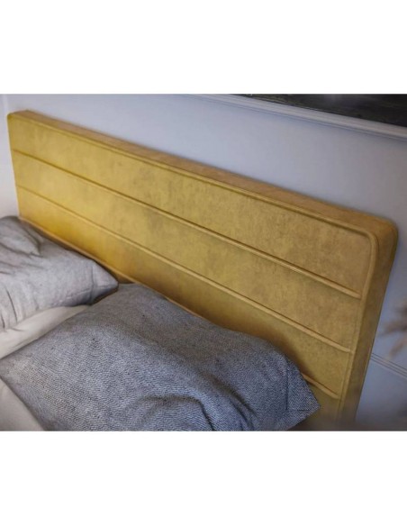 Gulta HORIZO, kuras galvgalis ir nošūts ar horizontālām šuvēm, ar divām gultasveļas kastēm un daudzslāņu konstrukciju ērtam miegam.