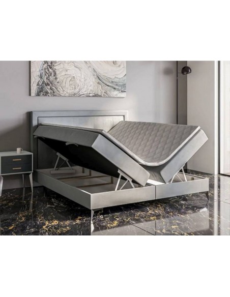 HUGO gulta izceļas ar pikē galvgali ar elegantu rāmi, kas piešķir tai unikālu stilu. Ērtais un praktiskais dizains ar diviem ietilpīgiem veļas nodalījumiem, kas atveras no sāniem, nodrošina kārtību guļamistabā. Bonell atsperu matracis ar T-25 putām un matrača virsmatraci garantē komfortu.