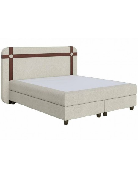 KROS gulta ar noapaļotu galvgali, eko ādas detaļām un koka pamatni - elegance, komforts un moderns dizains bez liekām detaļām.