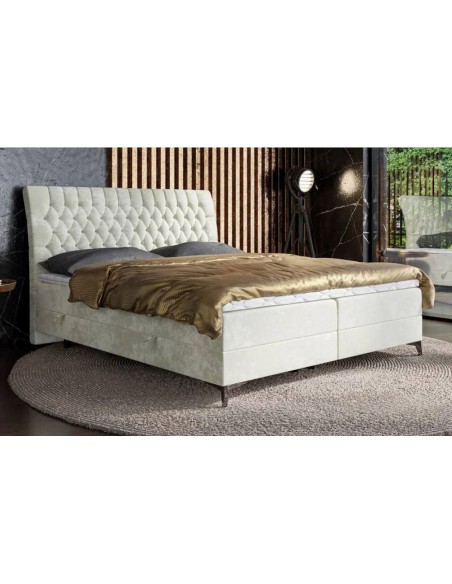 MOLLY ir gulta ar ekskluzīvu dizainu, kuras galvgalis ir viegli atliekts atpakaļ un dekorēts ar stepētu apdari, radot elegantu vizuālo efektu. Vienmērīgi baltā pamatne piešķir mēbelei vieglumu un mūsdienīgu raksturu, savukārt matēti melnas vai hromētas metāla kājas piešķir modernu akcentu. Ērts matracis ar papildu virsmatraci nodrošina komfortu, un daudzslāņu konstrukcija ļauj baudīt ideālu augstumu un komfortablu atpūtu. MOLLY ir lieliska izvēle tiem, kas novērtē mūsdienīgu stilu, eleganci un ērtības.