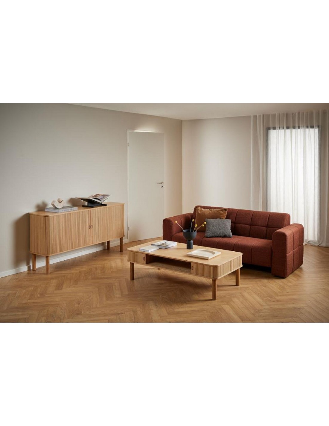 Šis kafijas galdiņš izceļas ar savu dabisko izskatu un kvalitatīvajiem materiāliem. Galda virsma ir pārklāta ar ozolkoka finierējumu, kas pārklāts ar izturīgu PU laku, kas izceļ koksnes šķiedru un piešķir virsmai izturību. Masīvozā ozola un finiera konstrukcija nodrošina stabilitāti un izturību, padarot to piemērotu intensīvai lietošanai. Minimālistiskas formas un siltais dabiskais tonis ļauj viegli pieskaņot mēbeles dažādiem interjera stiliem – no moderna līdz klasiskam. Tā ir lieliska izvēle mājas birojam, viesistabai vai uzgaidāmajai telpai.