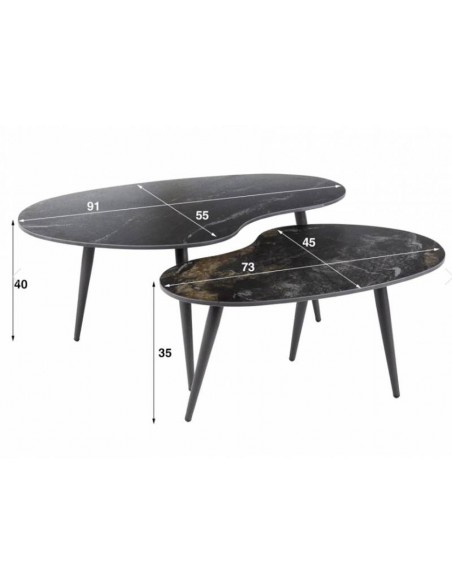 Divu kafijas galdiņu komplekts ar melnu keramikas virsmu, kas jūsu interjeram piešķirs greznības pieskārienu.