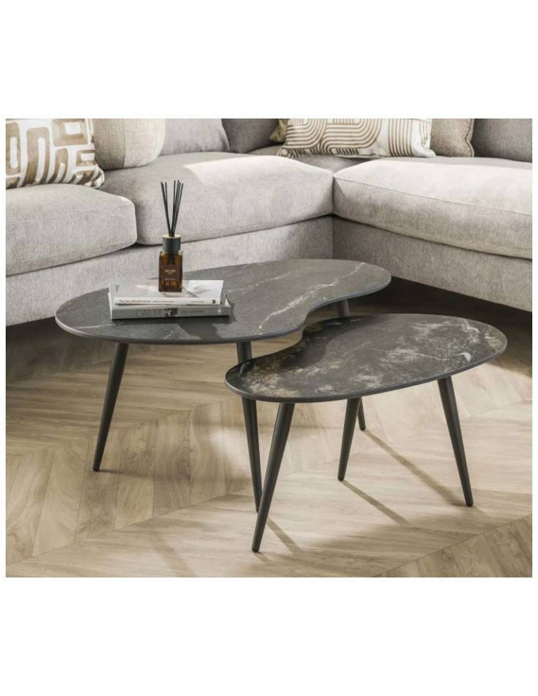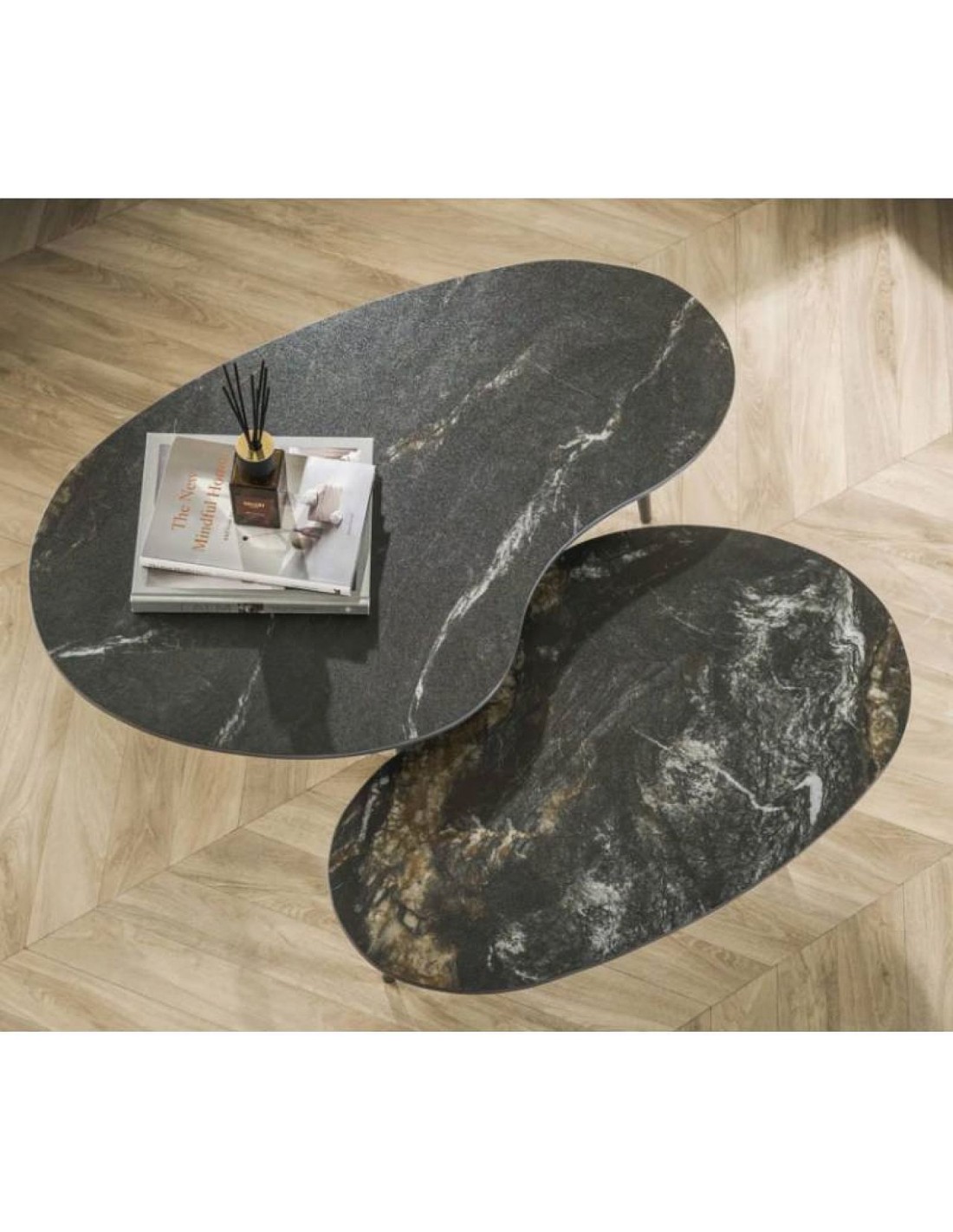 Šie galdi ir ārkārtīgi daudzpusīgi — tos var izmantot kopā kā izteiksmīgu centrālo elementu viesistabā vai atsevišķi dažādās telpās. Tie ir funkcionāls un stilīgs risinājums tiem, kas meklē modernu eleganci.