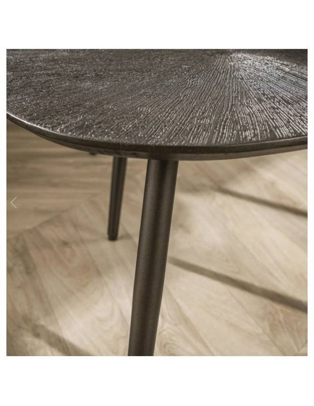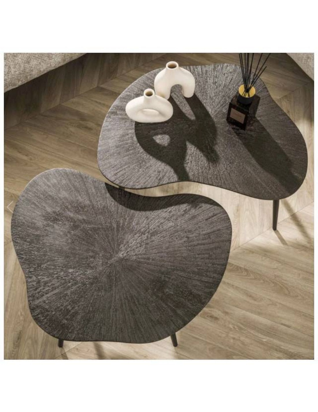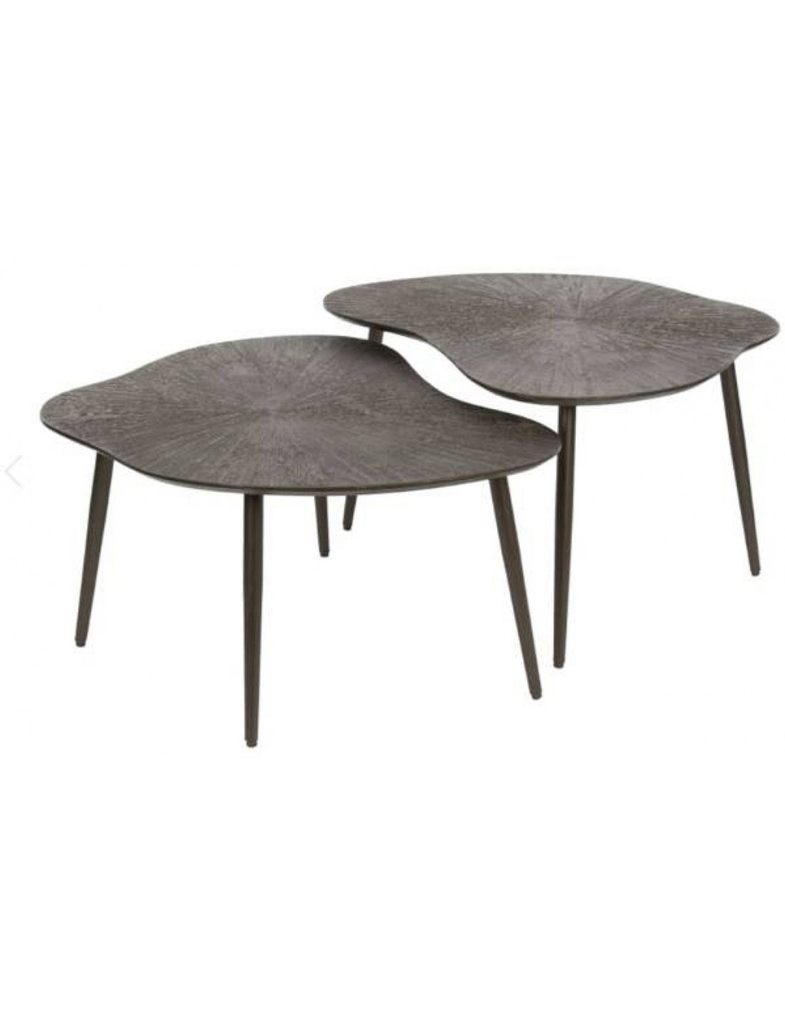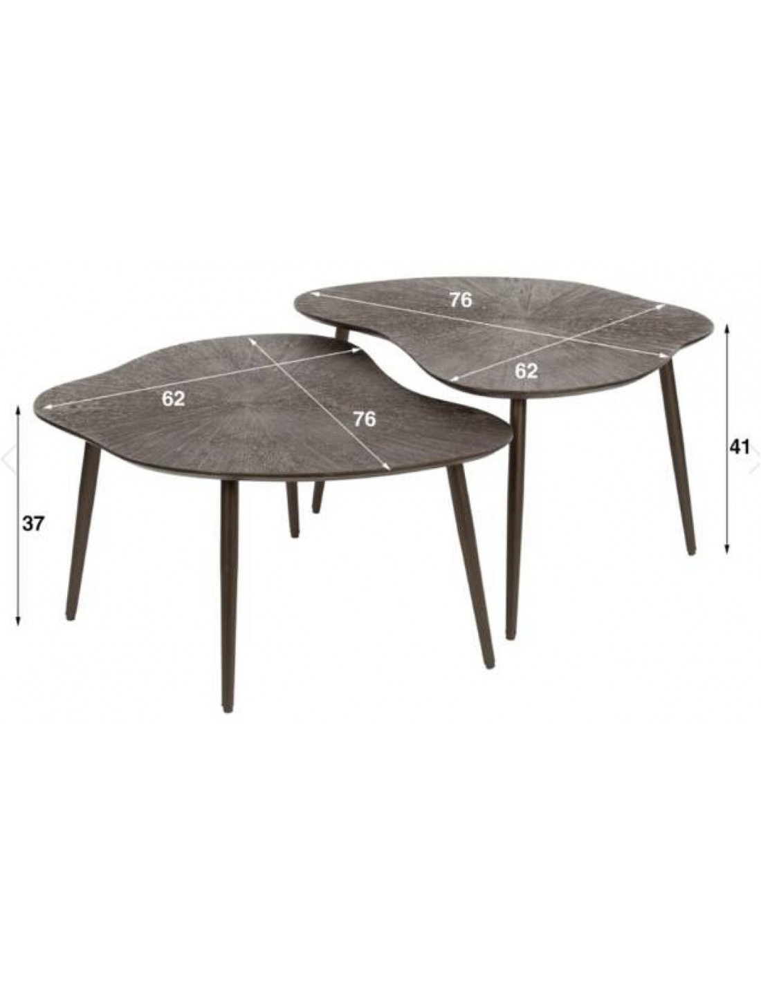 BROWNRAY kafijas galdiņu komplekts izceļas ar savu mūsdienīgo dizainu un elegantu brūnbronzas nokrāsu. MDF galda virsmas ar slīpētām malām piešķir mēbelei neuzkrītošu greznību, savukārt siltais metāliskais efekts rada mājīgu atmosfēru viesistabā.