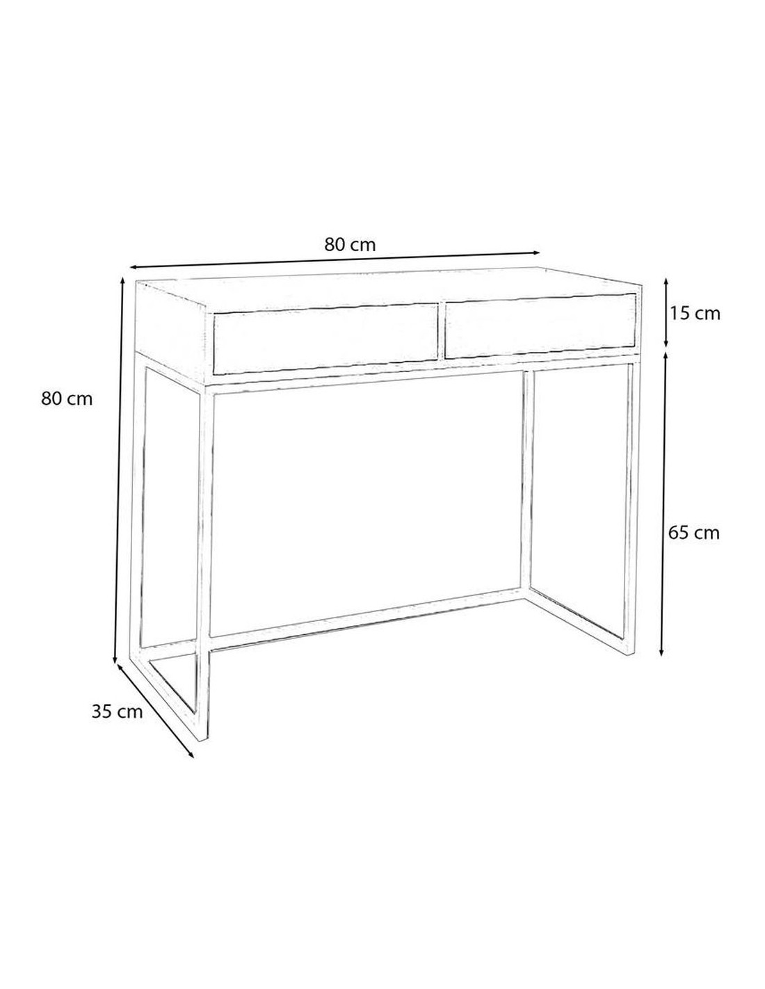 Moderna dizaina konsole AGRIO. Konsoles siluetu raksturo elegance un leņķiskums. Galda virsma izgatavota no lamināta, ar divām atvilktnēm, kājiņas un rāmis no melna metāla. Kājas ir papildus savienotas iekšpuses apakšā.