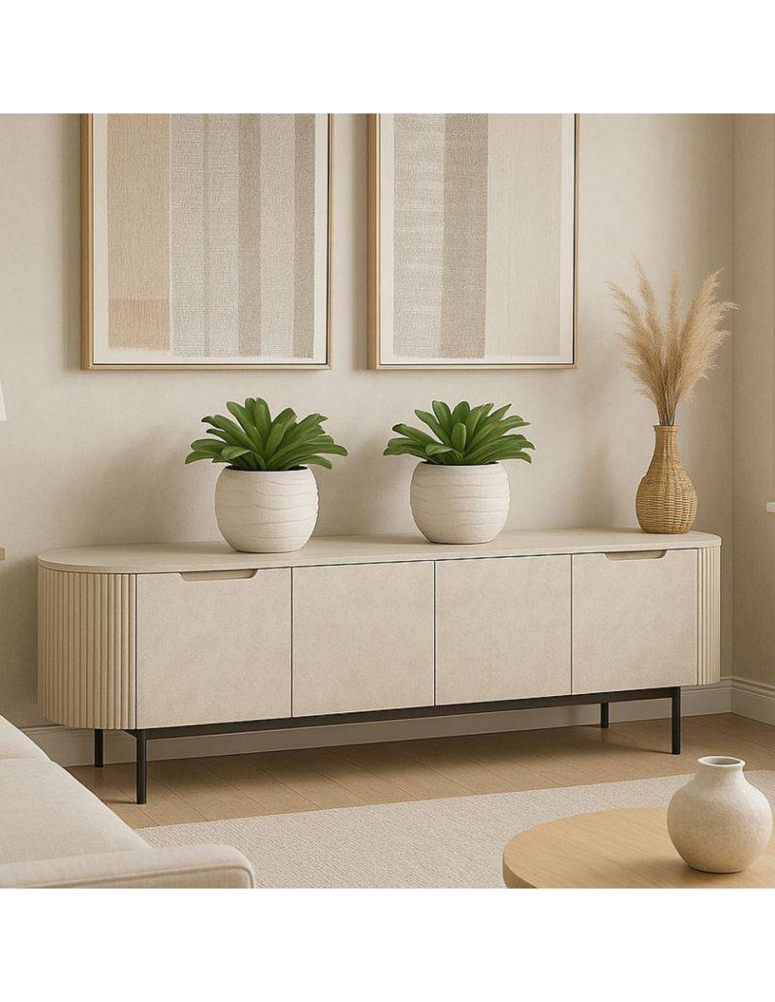 TEMPO kumode izceļas ar modernu siluetu un elegantu krēmkrāsas apdari. Tās platās, maigi noapaļotās fasādes ar slēptiem rokturiem rada vienotu un harmonisku izskatu. Funkcionālais interjers ar ietilpīgiem plauktiem un atvilktnēm ļauj ērti uzglabāt dažādus priekšmetus – sākot no tekstilizstrādājumiem līdz dokumentiem vai dekoratīviem elementiem. Šī ir universāla mēbele, kas lieliski iederas viesistabā, guļamistabā vai gaitenī, piešķirot interjeram neuzkrītošu greznības sajūtu.