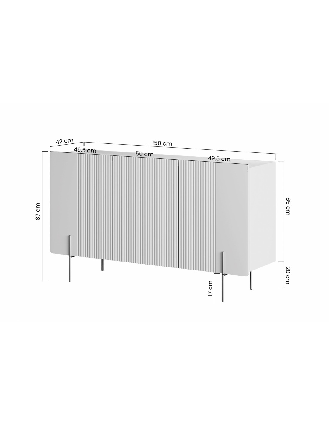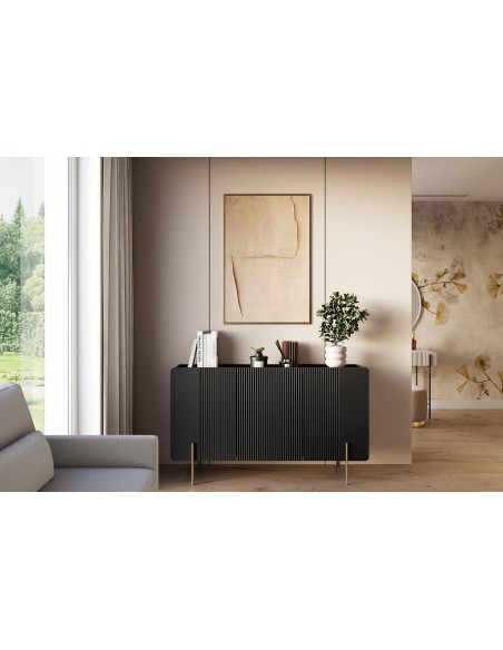 Izgatavots pēc Accanto grupas pasūtījuma (MB)Trīs durvju kumode MALMI - durvis ar smalku reliefu un metāla kājas ir stilīga un praktiska mēbele mūsdienīgam interjeram.