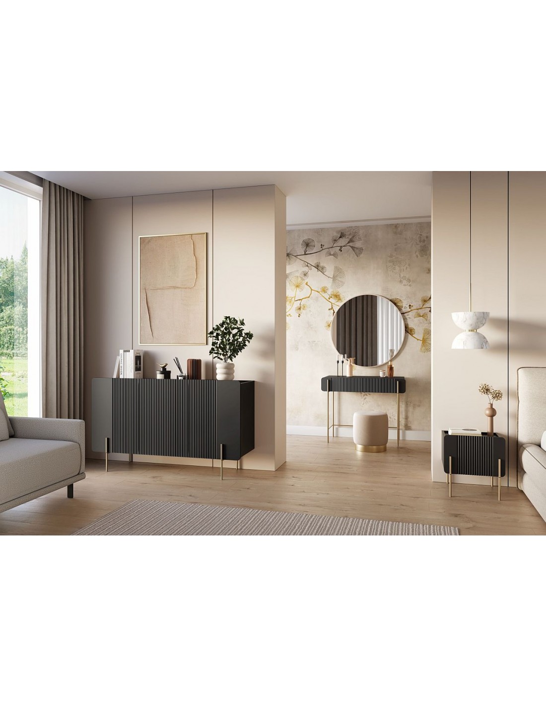 MALMI kumode ir moderna mēbele, kas apvieno funkcionalitāti un izsmalcinātu dizainu. Tās minimālistiskā forma, kas dekorēta ar elegantām rievām, piešķir interjeram neuzkrītošu ekskluzivitāti, un augstas kvalitātes materiāli nodrošina izturību.