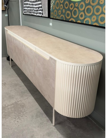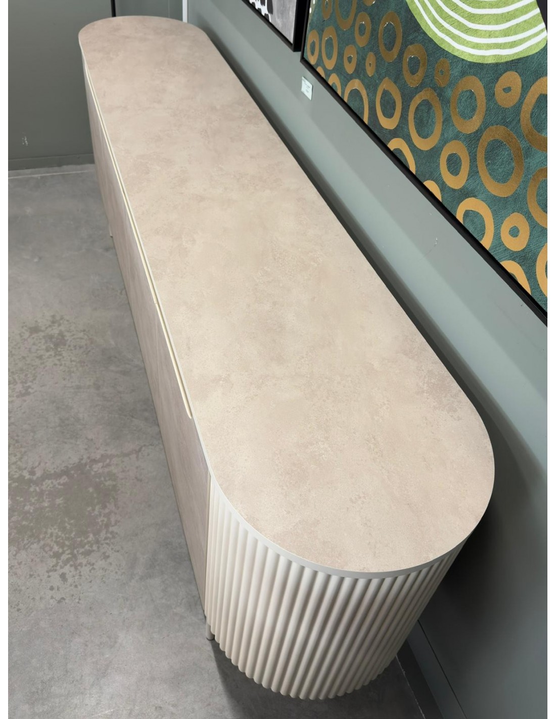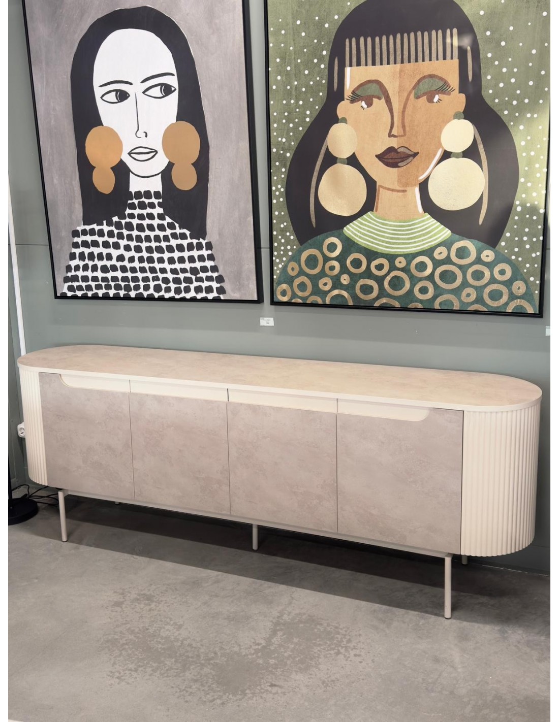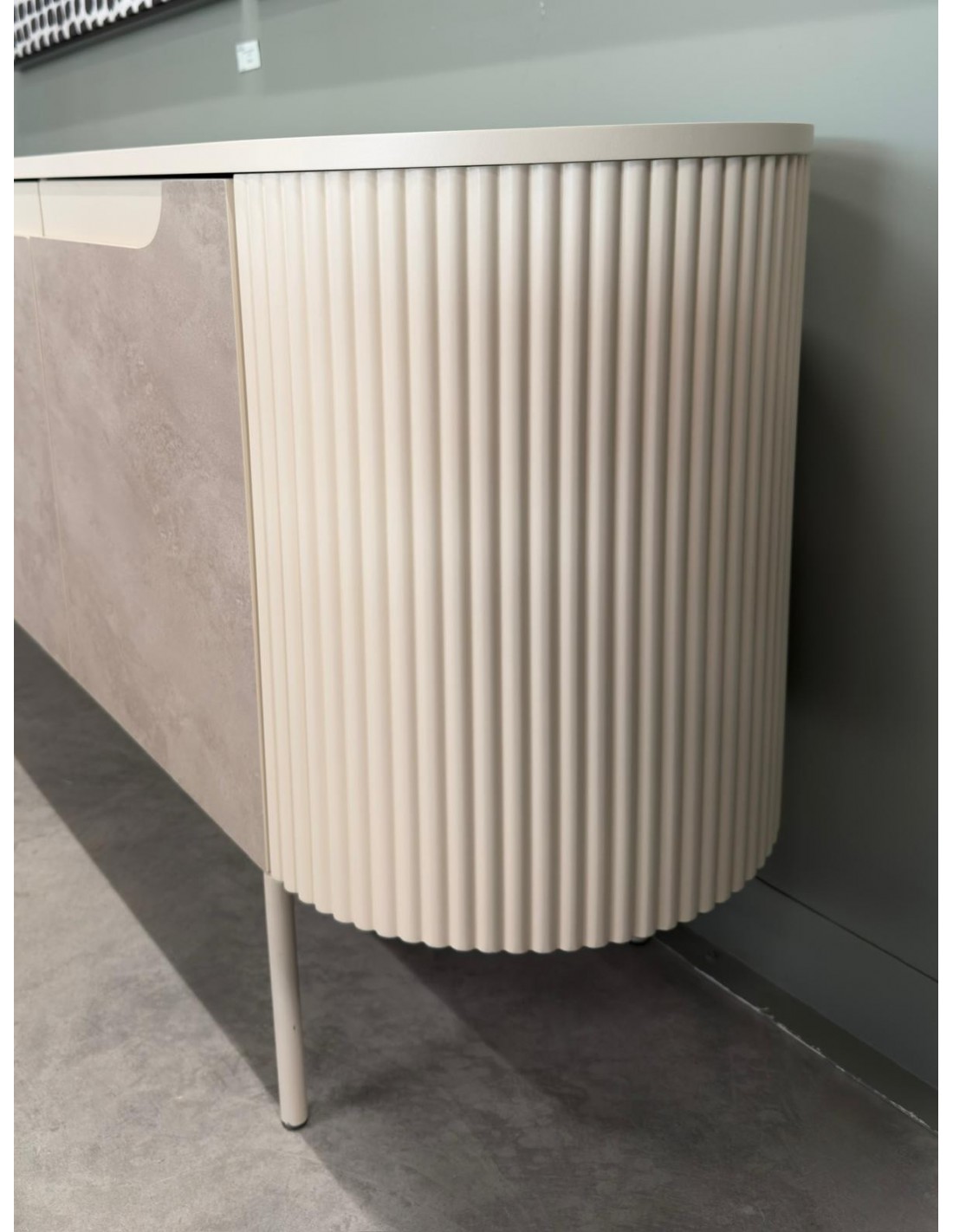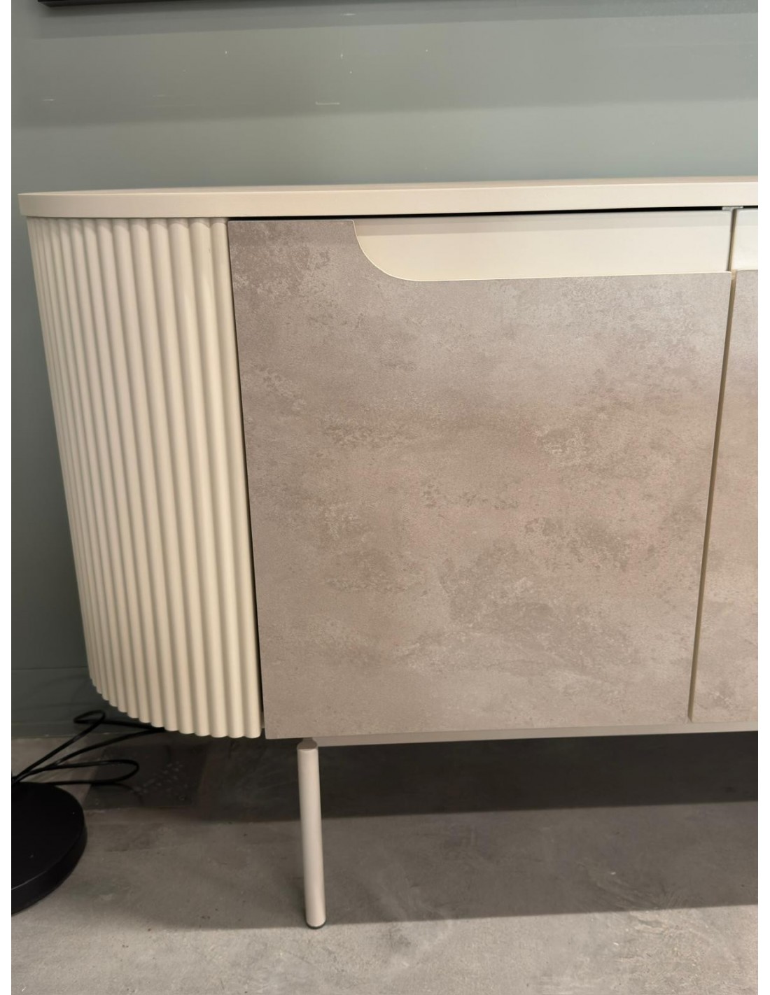 Izgatavots pēc Accanto grupas pasūtījuma (LU)TEMPO – krēmkrāsas kumode ar maigām līnijām un modernu dizainu.