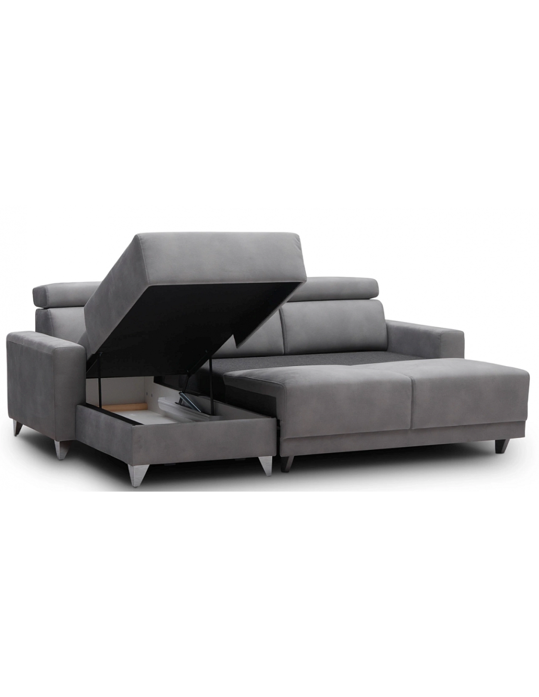 Kompaktais stūra dīvāns Kelly ar guļamsistēmu ir ideāls risinājums nelielām telpām. Eleganta forma, funkcionāla izvelkamā sistēma un regulējamie galvas balsti rada mēbeli, kas apvieno stilu ar praktiskumu.