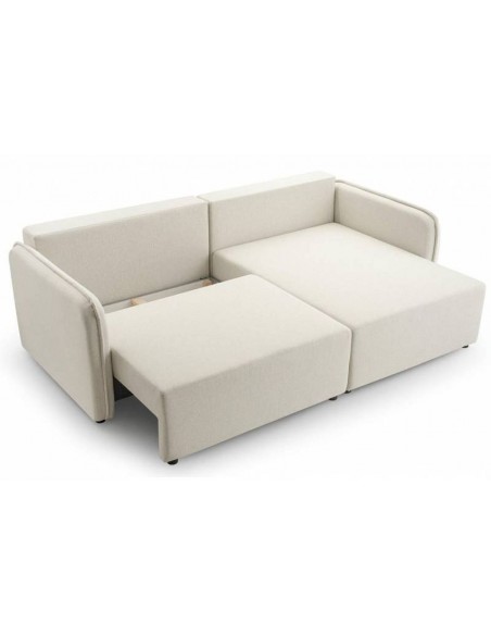 Integrētā guļamzona (200 × 130 cm) ļauj dīvānu viegli pārveidot par ērtu gultu – praktisks risinājums negaidītiem viesiem vai ikdienas lietošanai. Papildu gultasveļas kaste nodrošina kārtību un palīdz ietaupīt vietu, ērti uzglabājot spilvenus, segas vai gultasveļu.